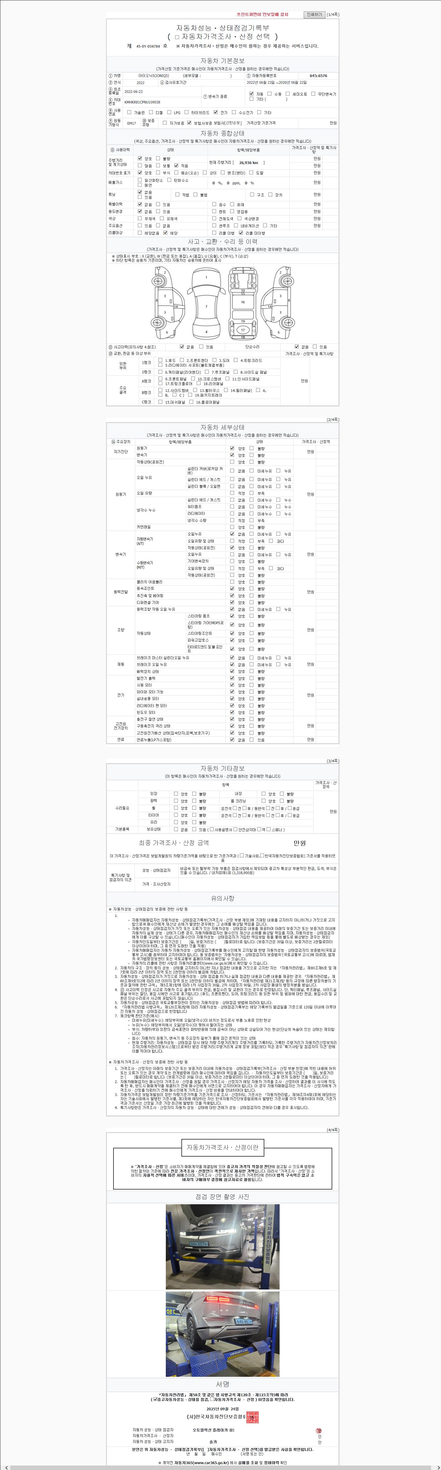 2. 차량 등록증이나 성능점검지 등을 상담자에게 요청및 확인하시고 사전에 미리 점검 하시기를 권유드립니다.