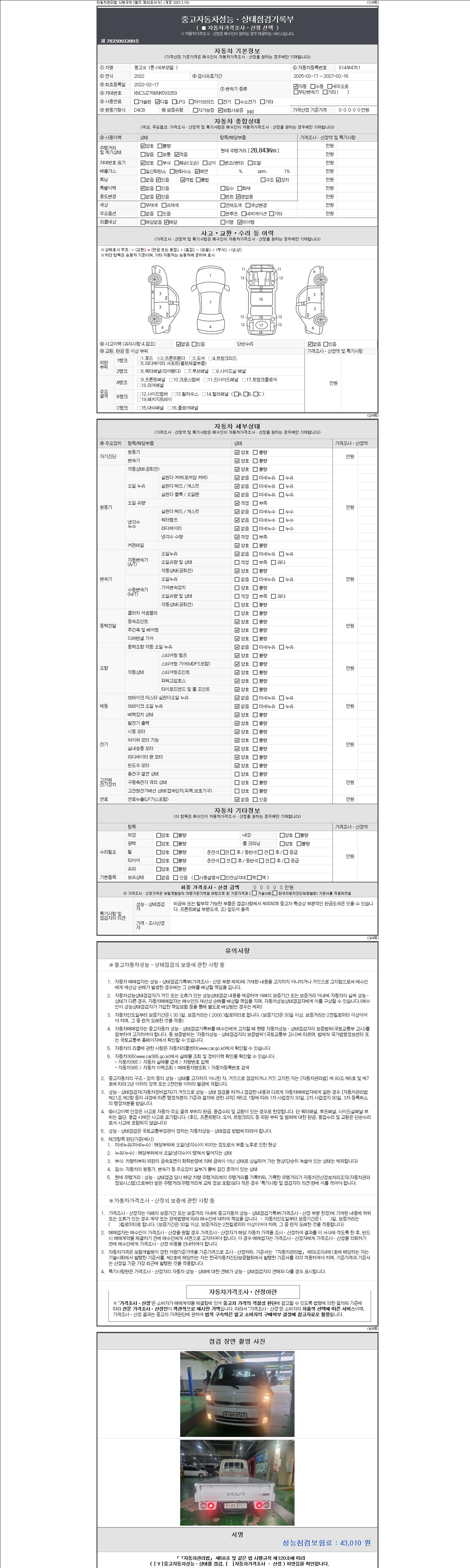 2. 차량 등록증이나 성능점검지 등을 상담자에게 요청및 확인하시고 사전에 미리 점검 하시기를 권유드립니다.
