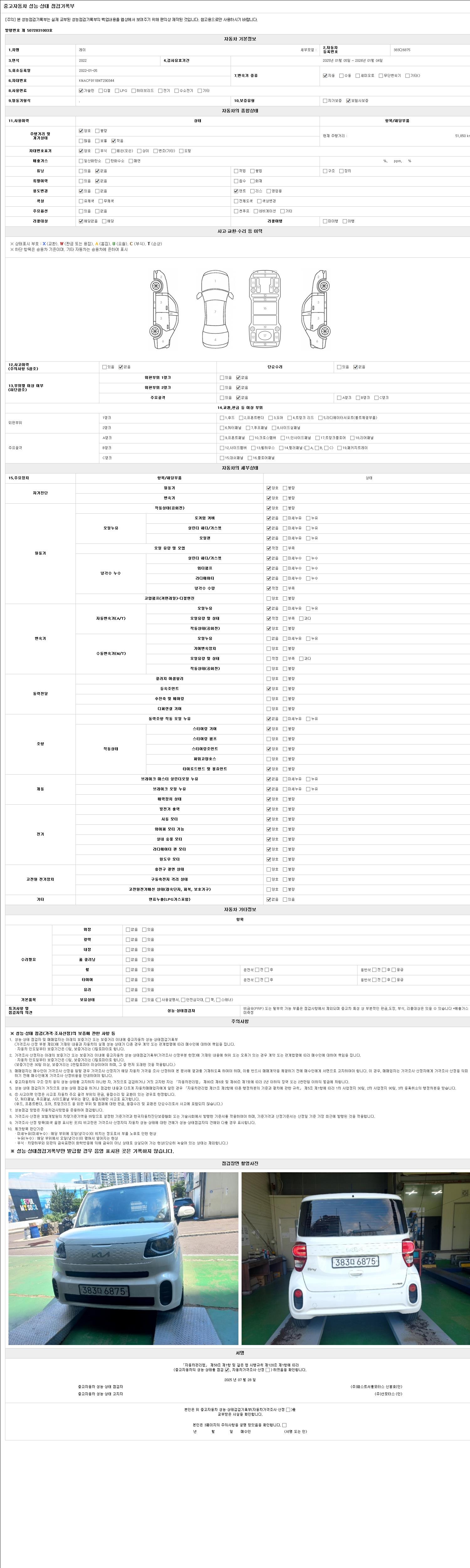 2. 차량 등록증이나 성능점검지 등을 상담자에게 요청및 확인하시고 사전에 미리 점검 하시기를 권유드립니다.