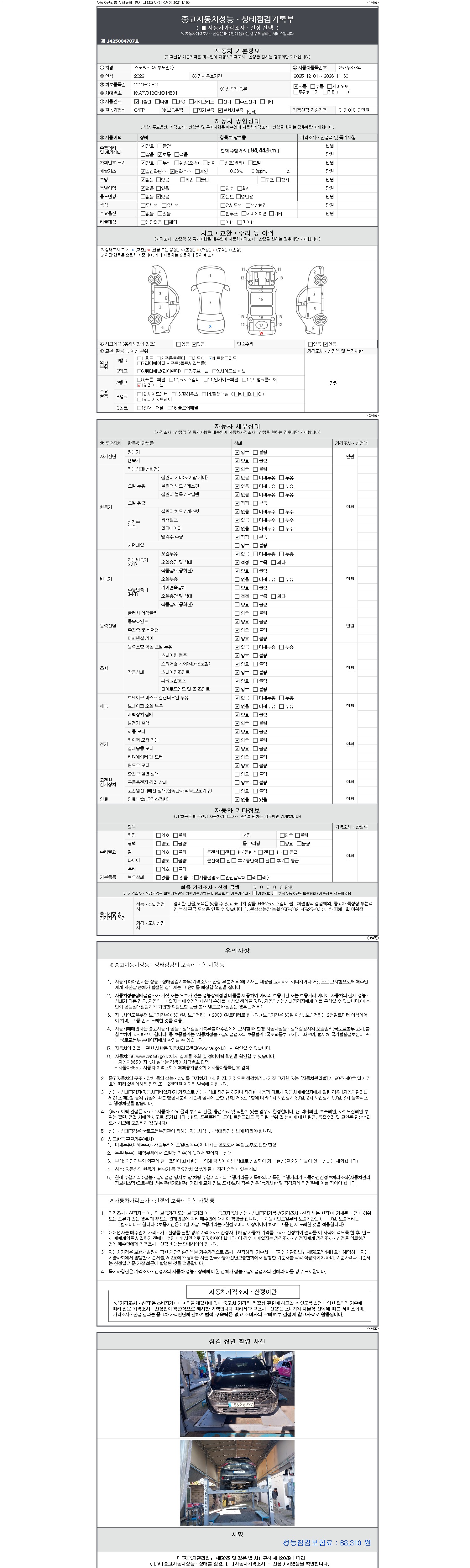 -중고자동차 매매업자를 통해 차량을 구입하실 경우 반드시 "중고자동차 성능, 상태점검 기록부"를 교뷰 받으셔야 하며, 매매업자는 반드시 의무 교부 하여야 압니다.