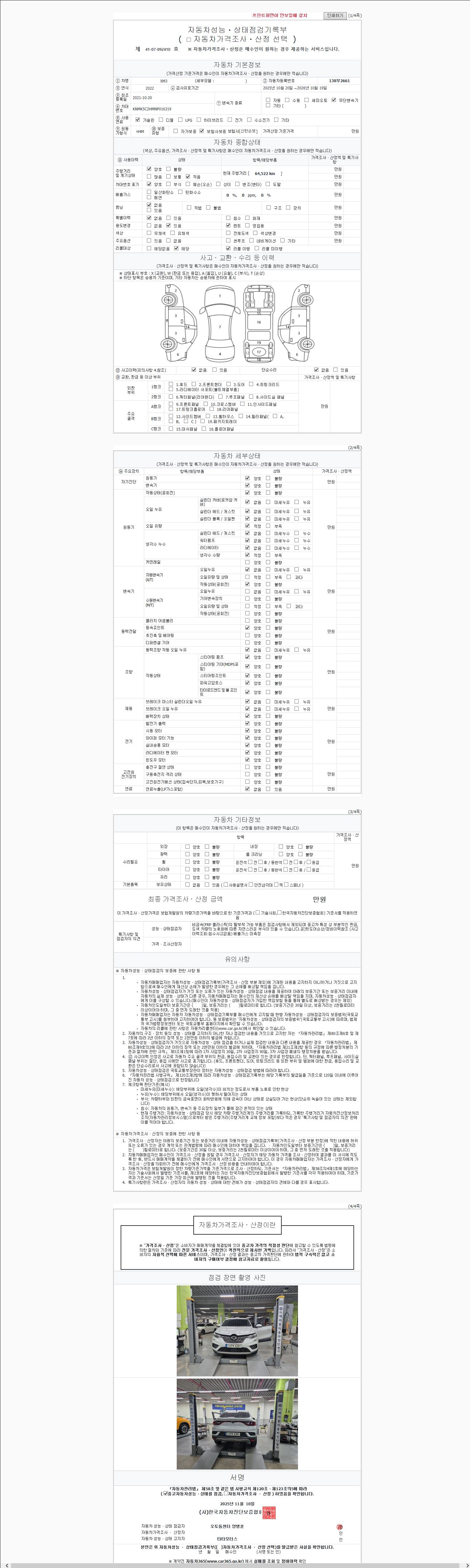 | 주행거리 | 64,522 km | 차량번호 | 138부2661 |
