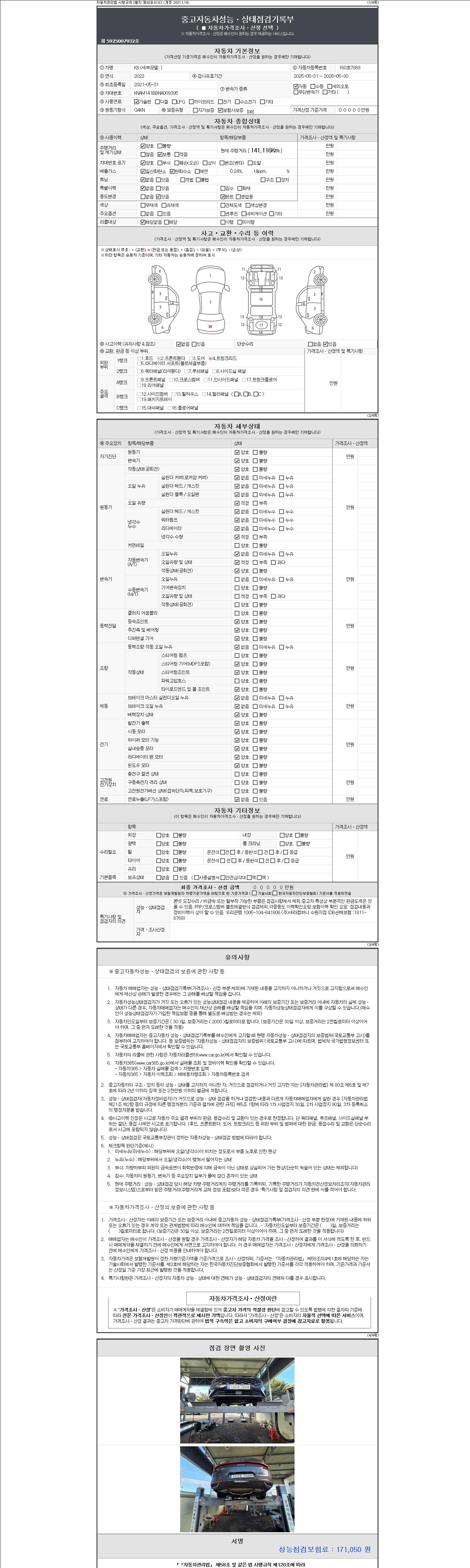 2. 차량 등록증이나 성능점검지 등을 상담자에게 요청및 확인하시고 사전에 미리 점검 하시기를 권유드립니다.