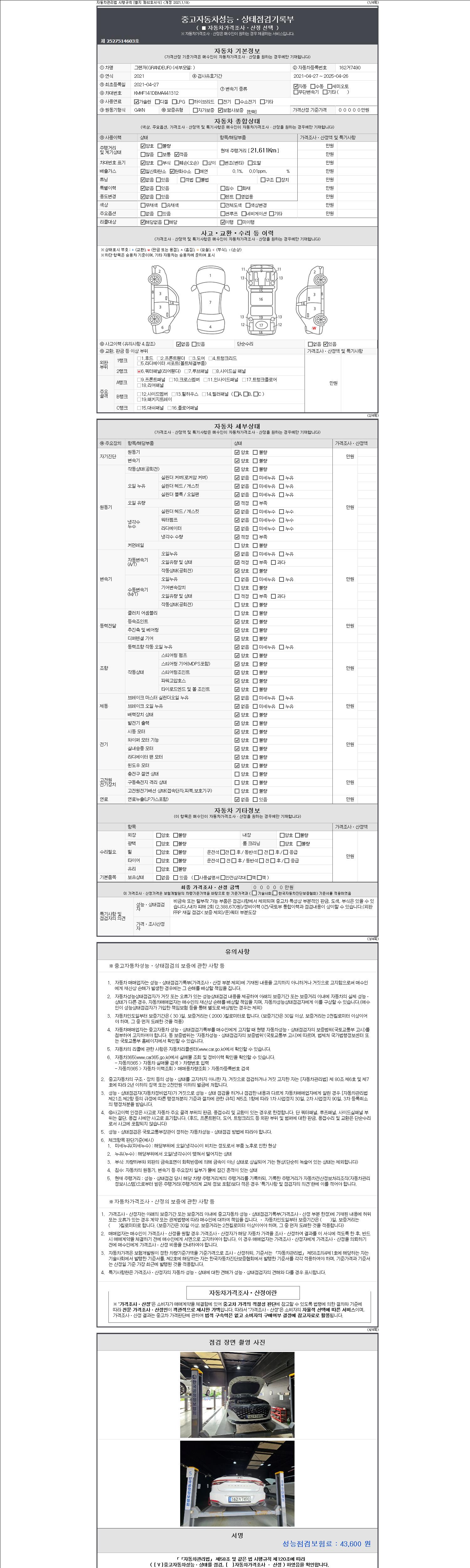2. 차량 등록증이나 성능점검지 등을 상담자에게 요청및 확인하시고 사전에 미리 점검 하시기를 권유드립니다.