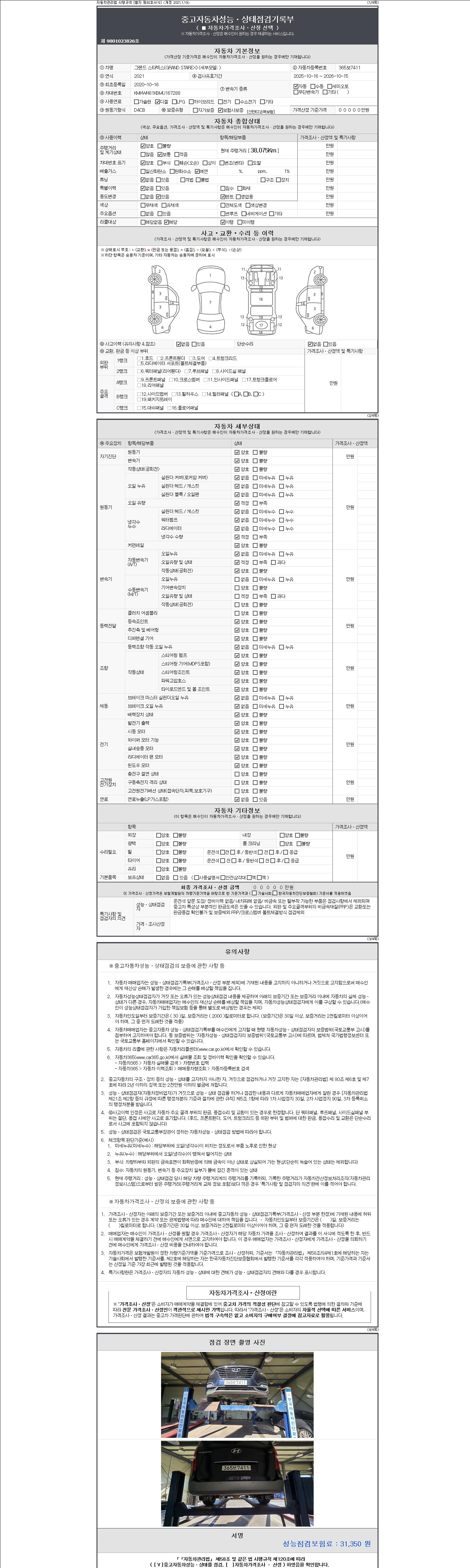 -중고자동차 매매업자를 통해 차량을 구입하실 경우 반드시 "중고자동차 성능, 상태점검 기록부"를 교뷰 받으셔야 하며, 매매업자는 반드시 의무 교부 하여야 압니다.