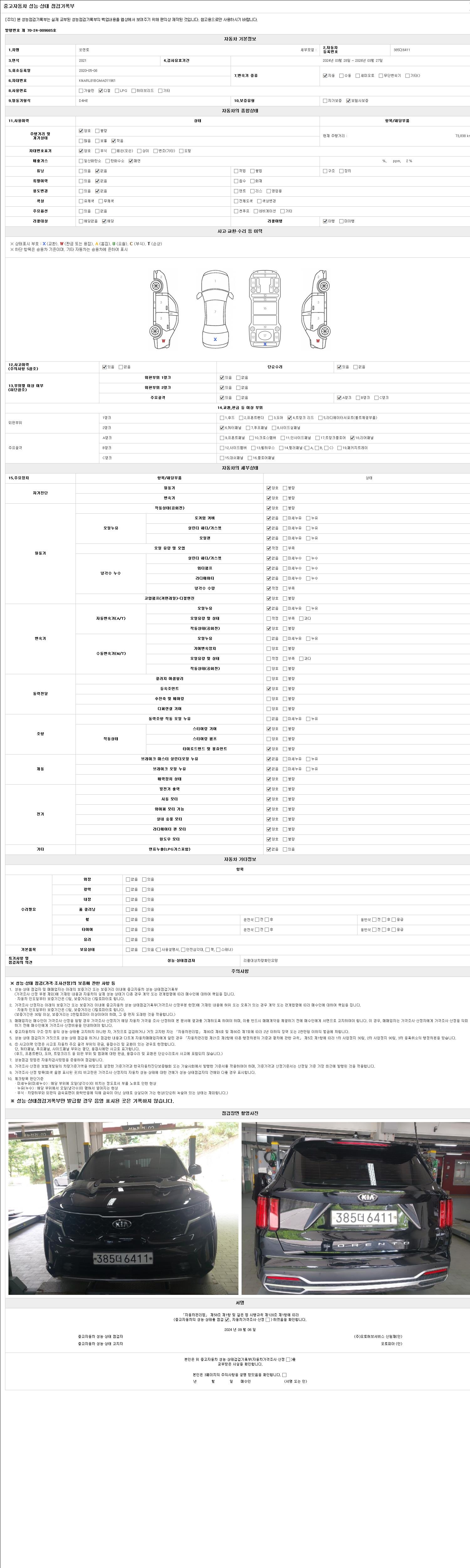 2. 차량 등록증이나 성능점검지 등을 상담자에게 요청및 확인하시고 사전에 미리 점검 하시기를 권유드립니다.