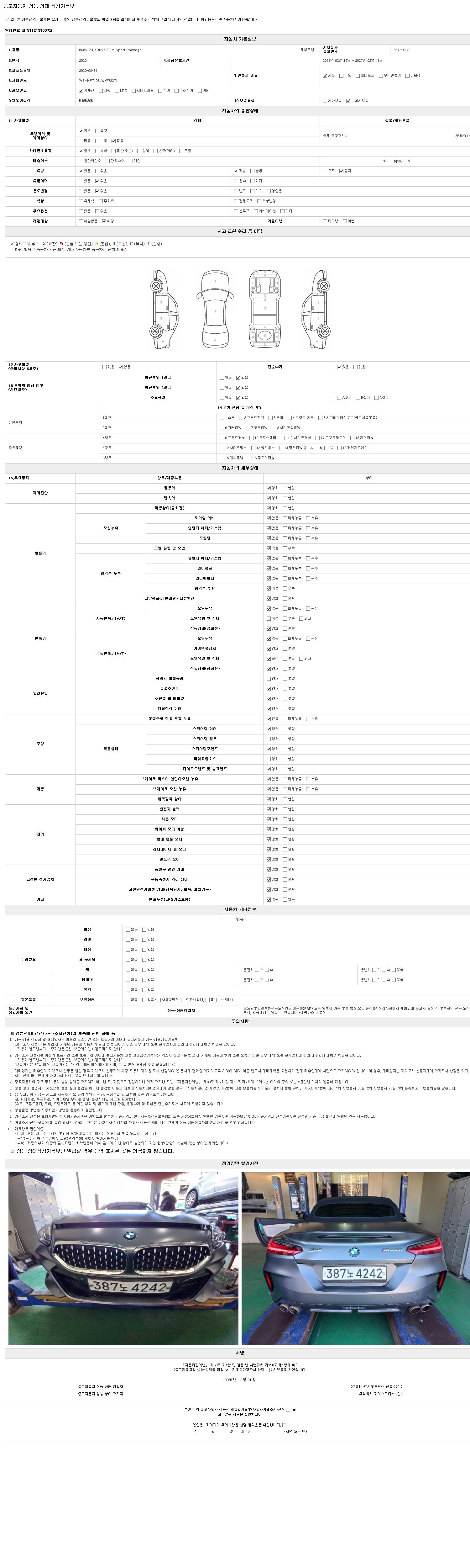 2. 차량 등록증이나 성능점검지 등을 상담자에게 요청및 확인하시고 사전에 미리 점검 하시기를 권유드립니다.