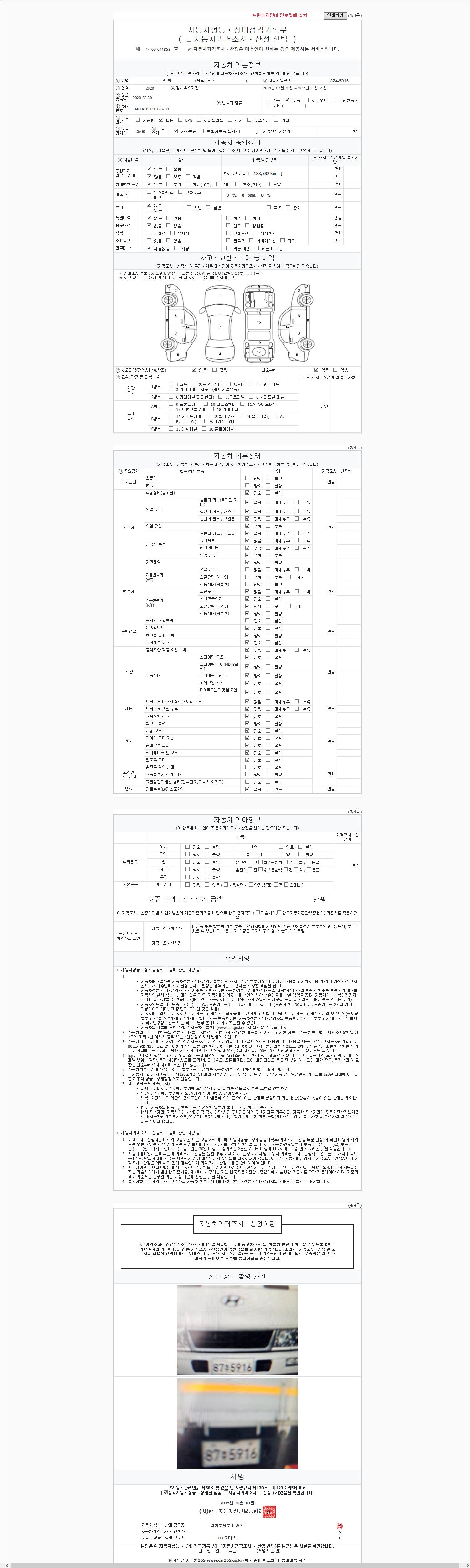 2. 차량 등록증이나 성능점검지 등을 상담자에게 요청및 확인하시고 사전에 미리 점검 하시기를 권유드립니다.