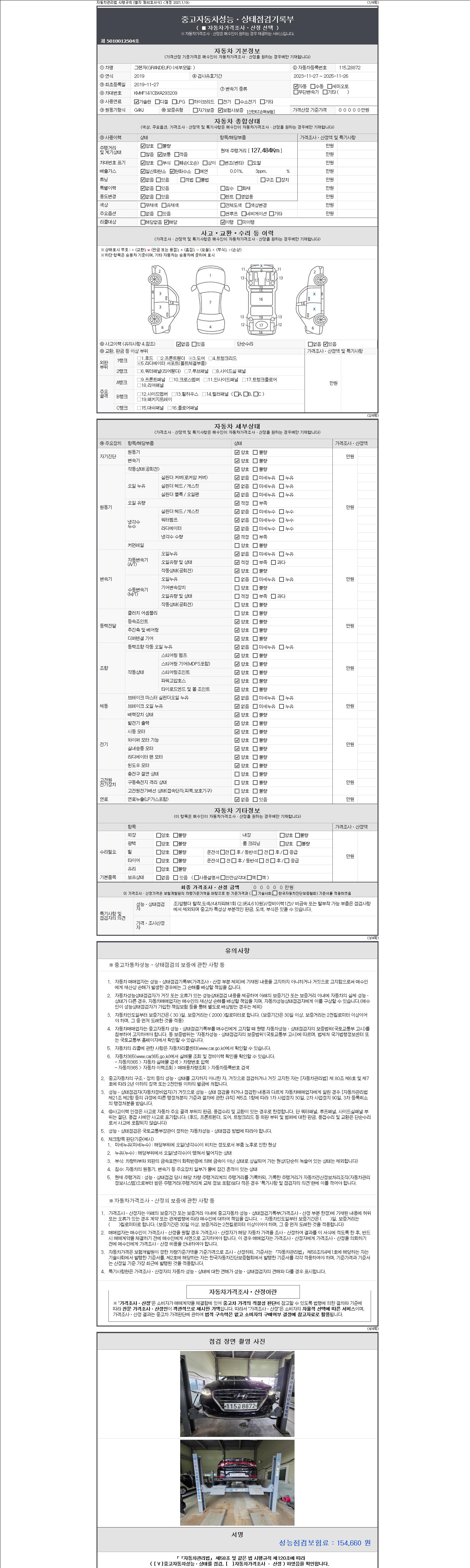 -중고자동차 매매업자를 통해 차량을 구입하실 경우 반드시 "중고자동차 성능, 상태점검 기록부"를 교뷰 받으셔야 하며, 매매업자는 반드시 의무 교부 하여야 압니다.