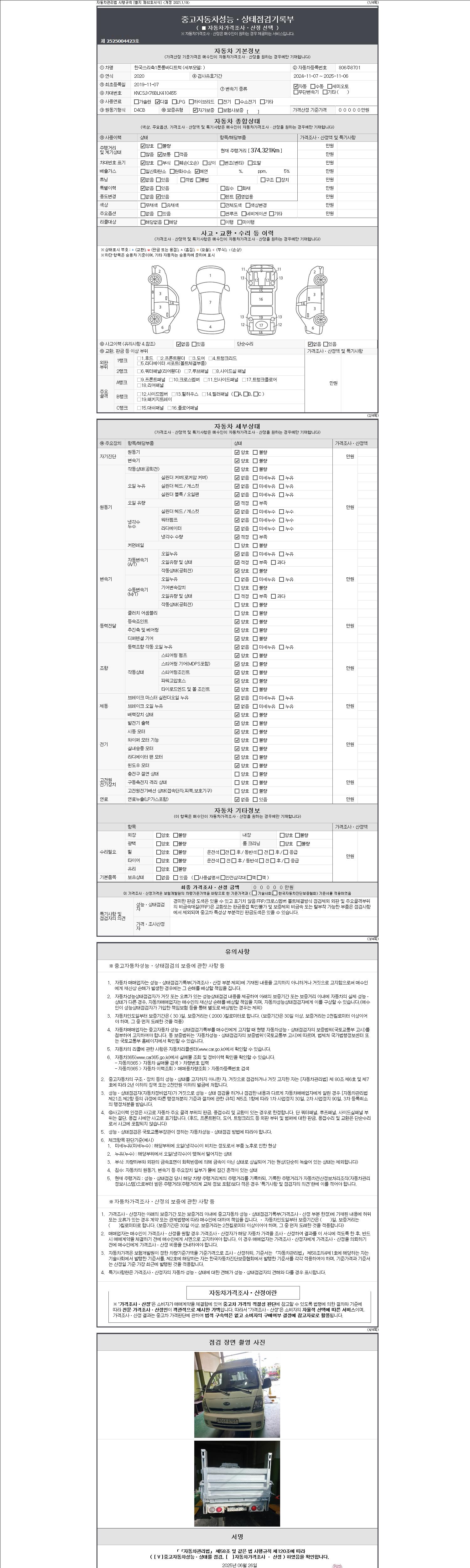 -중고자동차 매매업자를 통해 차량을 구입하실 경우 반드시 "중고자동차 성능, 상태점검 기록부"를 교뷰 받으셔야 하며, 매매업자는 반드시 의무 교부 하여야 압니다.