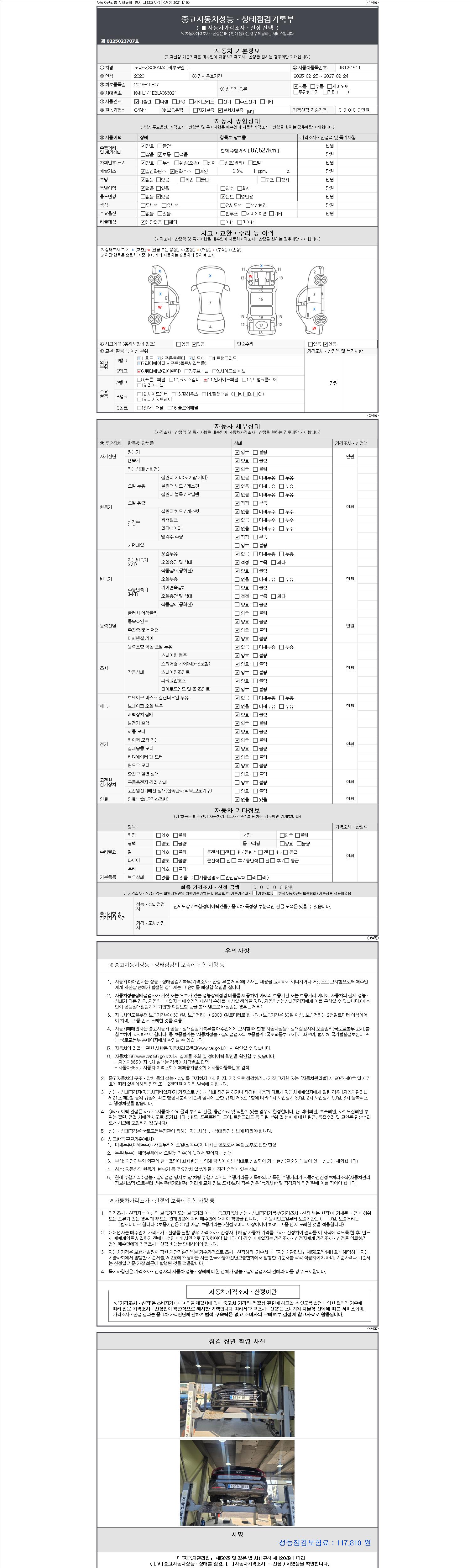2. 차량 등록증이나 성능점검지 등을 상담자에게 요청및 확인하시고 사전에 미리 점검 하시기를 권유드립니다.