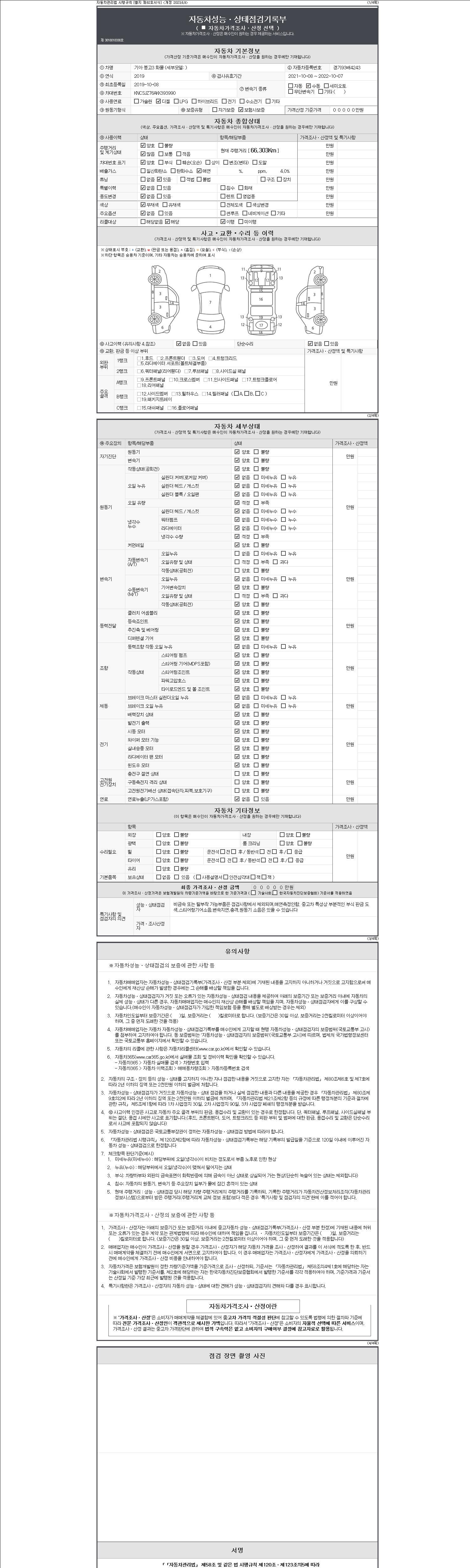 -중고자동차 매매업자를 통해 차량을 구입하실 경우 반드시 "중고자동차 성능, 상태점검 기록부"를 교뷰 받으셔야 하며, 매매업자는 반드시 의무 교부 하여야 압니다.