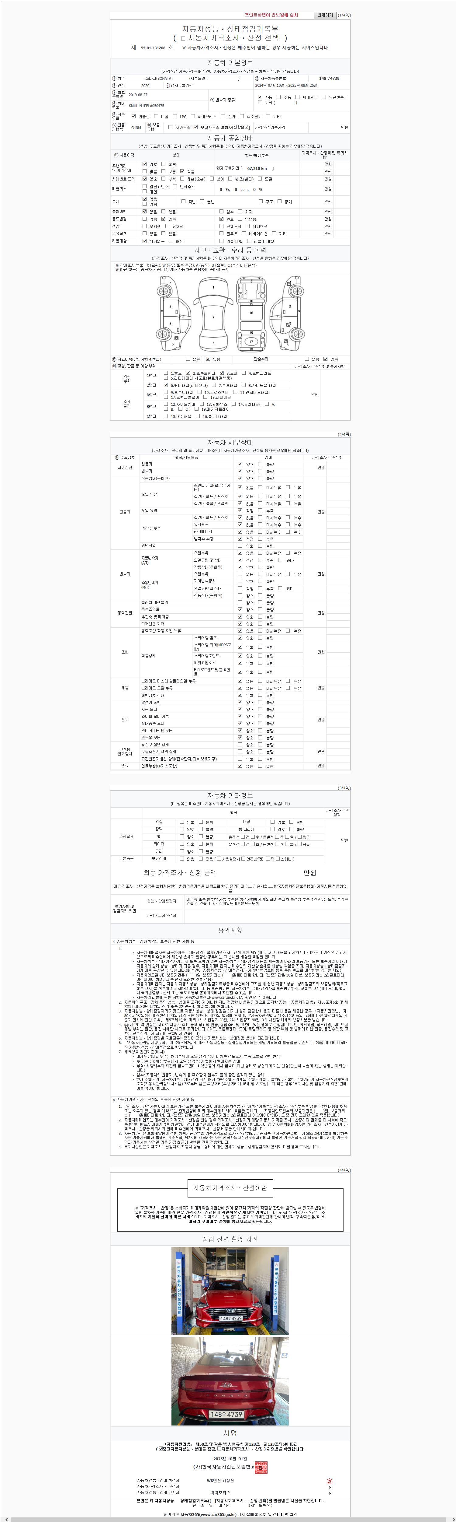 2. 차량 등록증이나 성능점검지 등을 상담자에게 요청및 확인하시고 사전에 미리 점검 하시기를 권유드립니다.