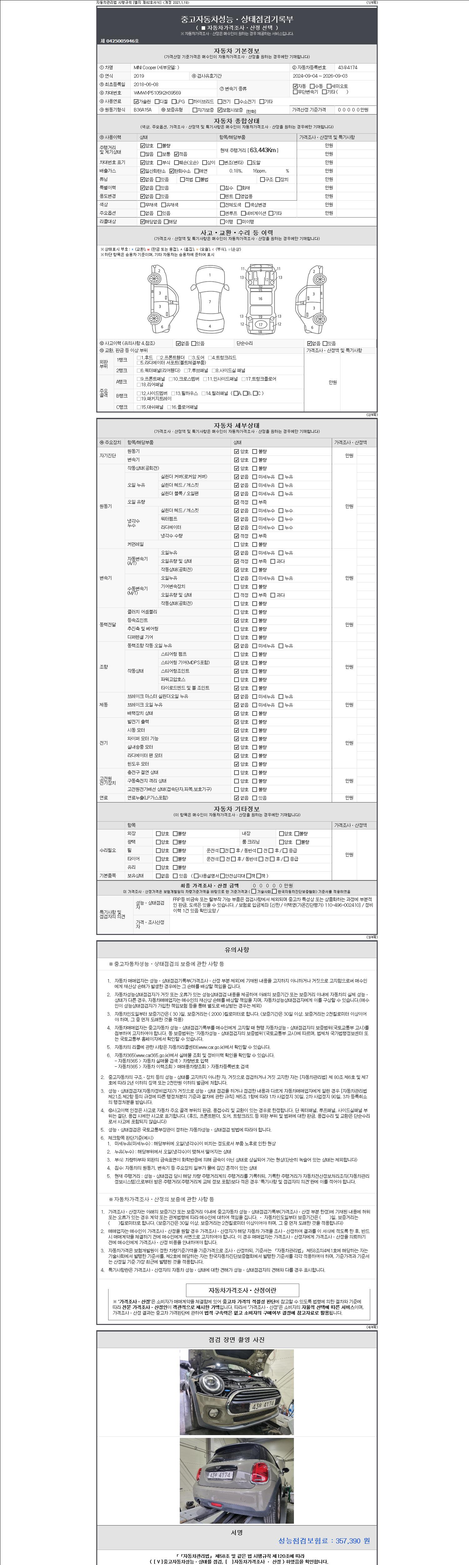 사고유무 성능기록부 참조 제시번호 제 2147483647 호