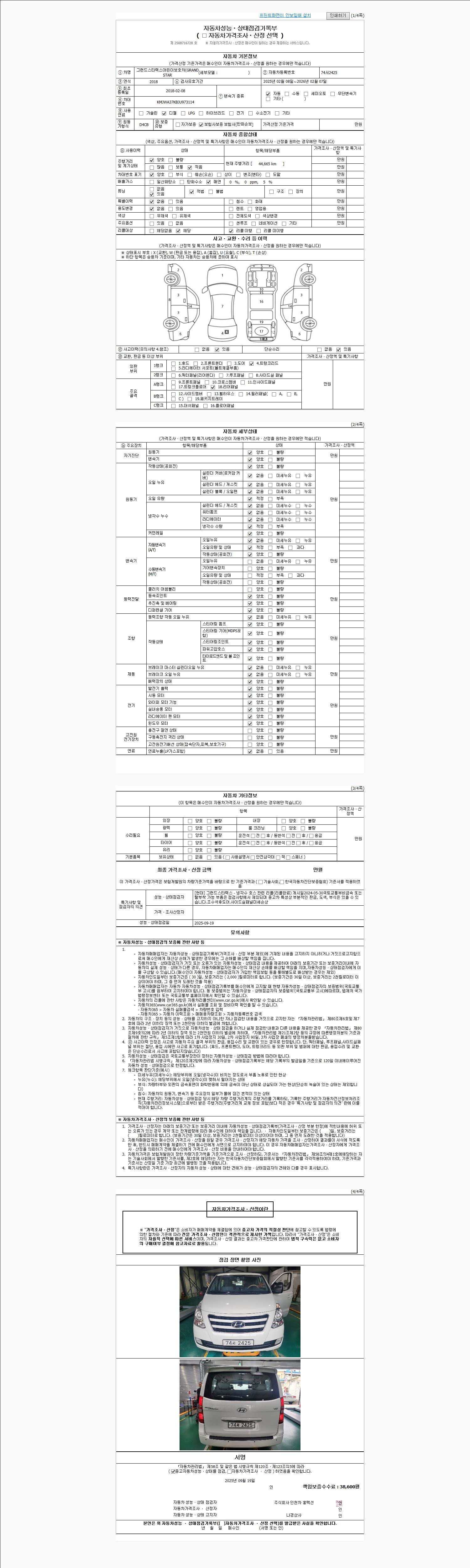 | 주행거리 | 44,665 km | 차량번호 | 74서2425 |