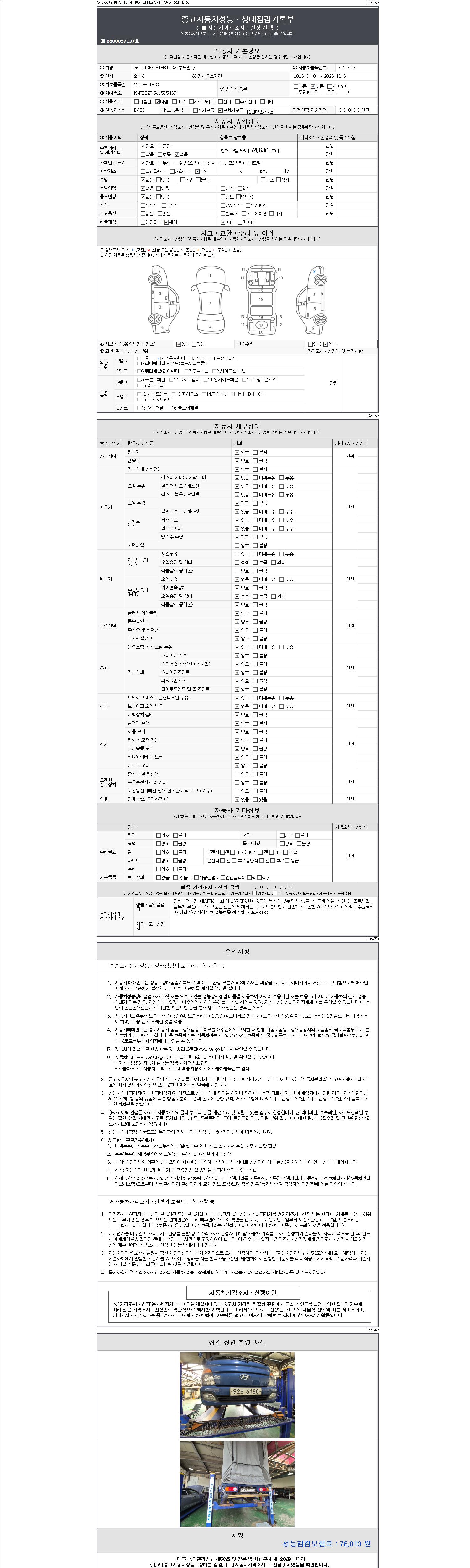 | 주행거리 | 74,636 km | 차량번호 | 92로6180 |