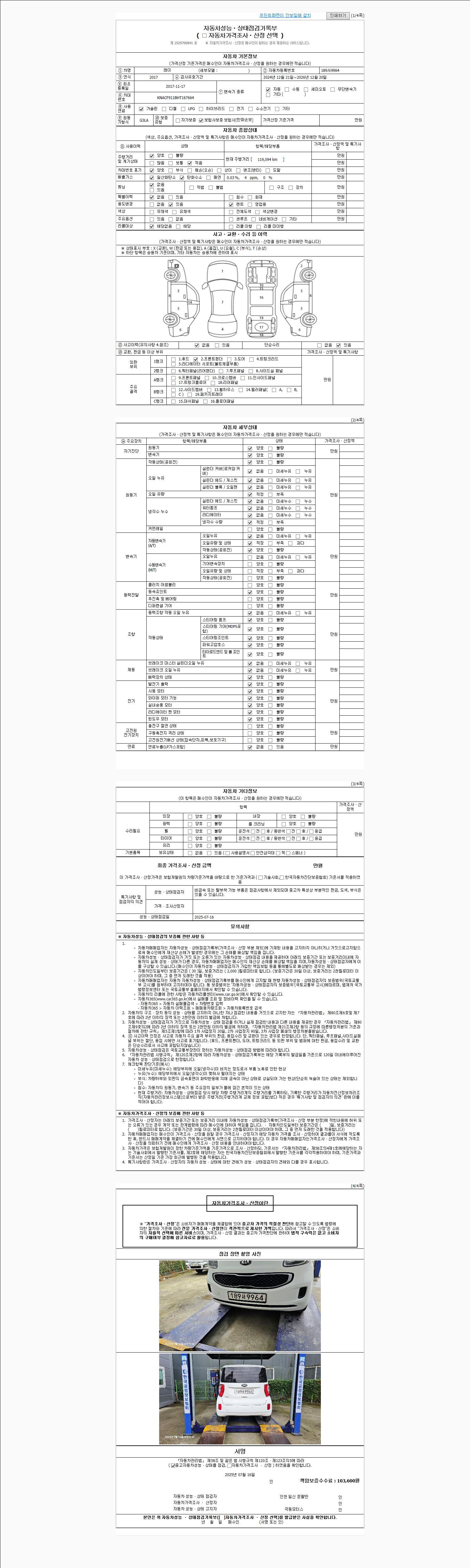 2. 차량 등록증이나 성능점검지 등을 상담자에게 요청및 확인하시고 사전에 미리 점검 하시기를 권유드립니다.