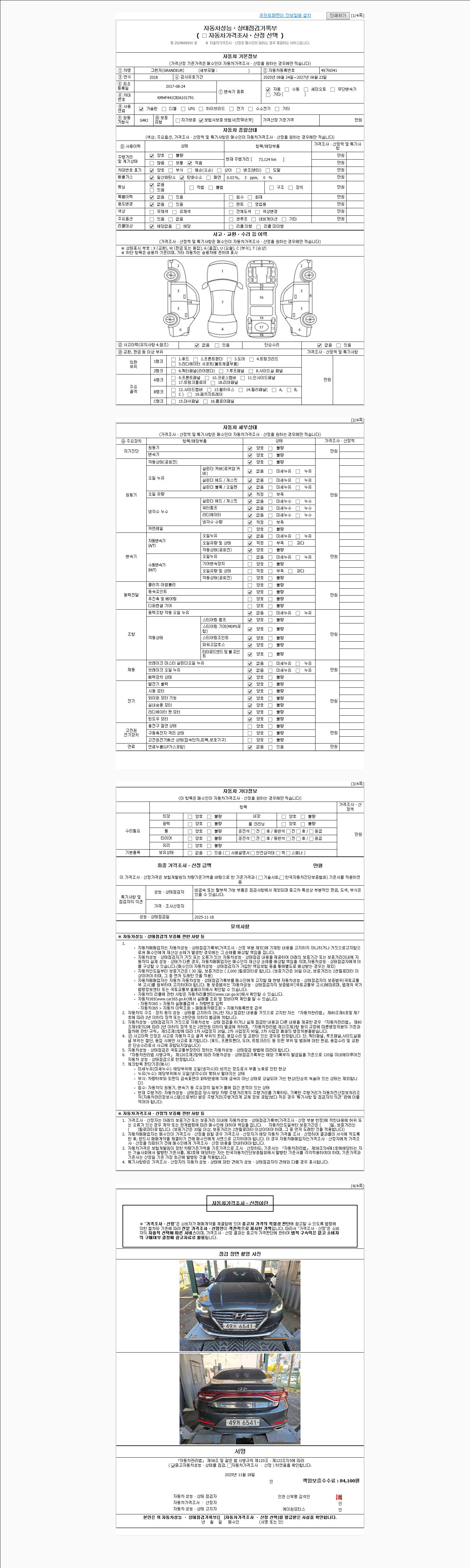 사고유무 성능기록부 참조 제시번호 제 2025064036 호