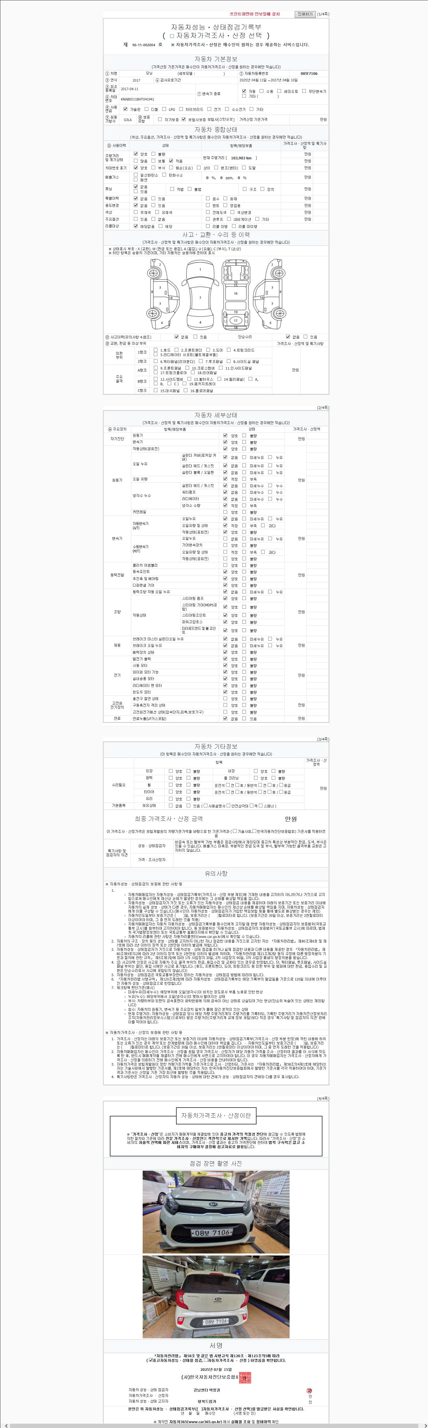 | 주행거리 | 103,903 km | 차량번호 | 08보7106 |