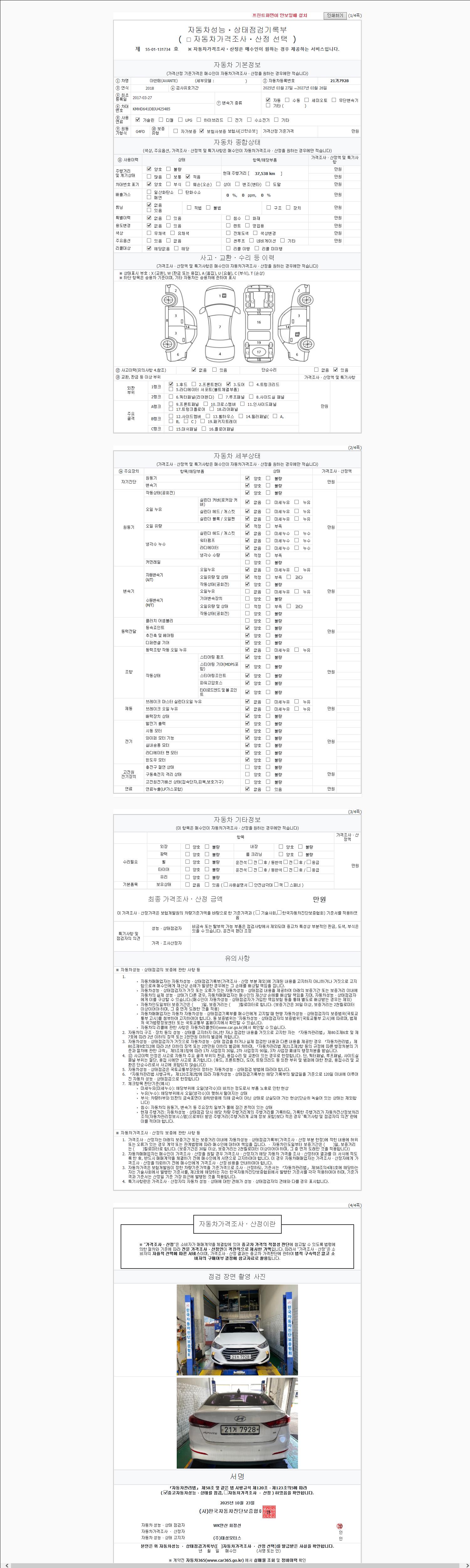 2. 차량 등록증이나 성능점검지 등을 상담자에게 요청및 확인하시고 사전에 미리 점검 하시기를 권유드립니다.