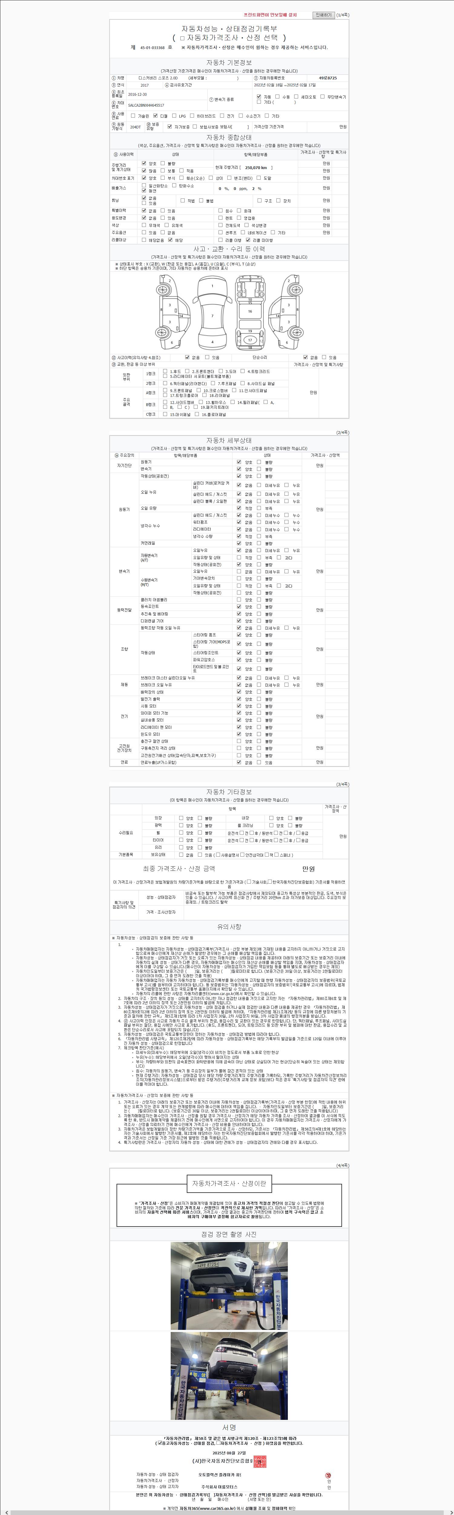 사고유무 성능기록부 참조 제시번호 제 2147483647 호