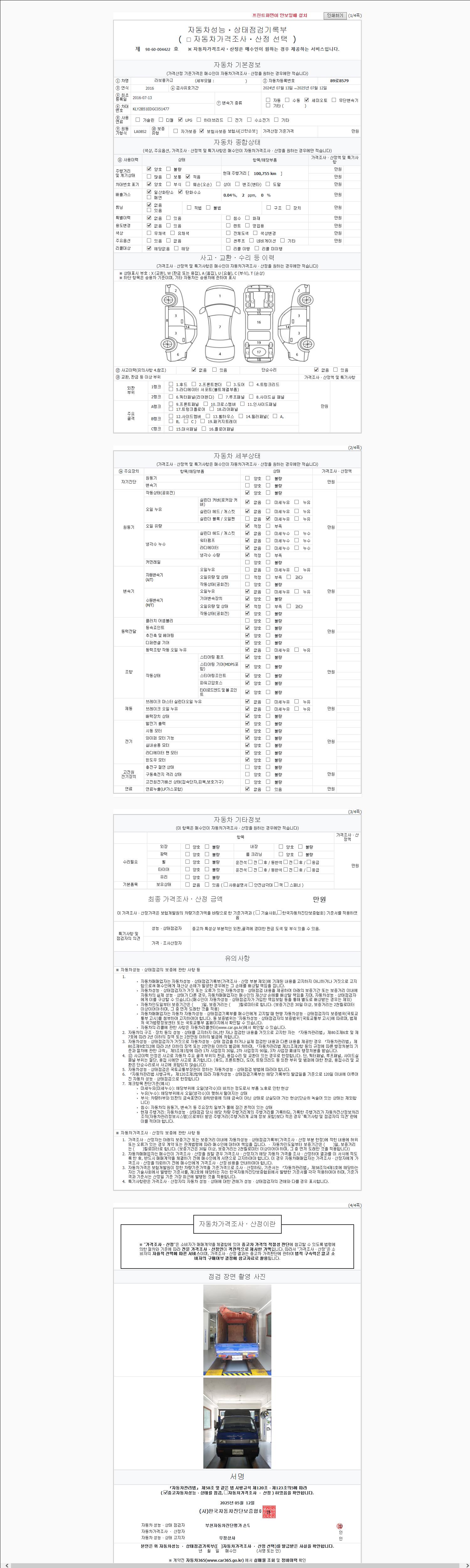 2. 차량 등록증이나 성능점검지 등을 상담자에게 요청및 확인하시고 사전에 미리 점검 하시기를 권유드립니다.