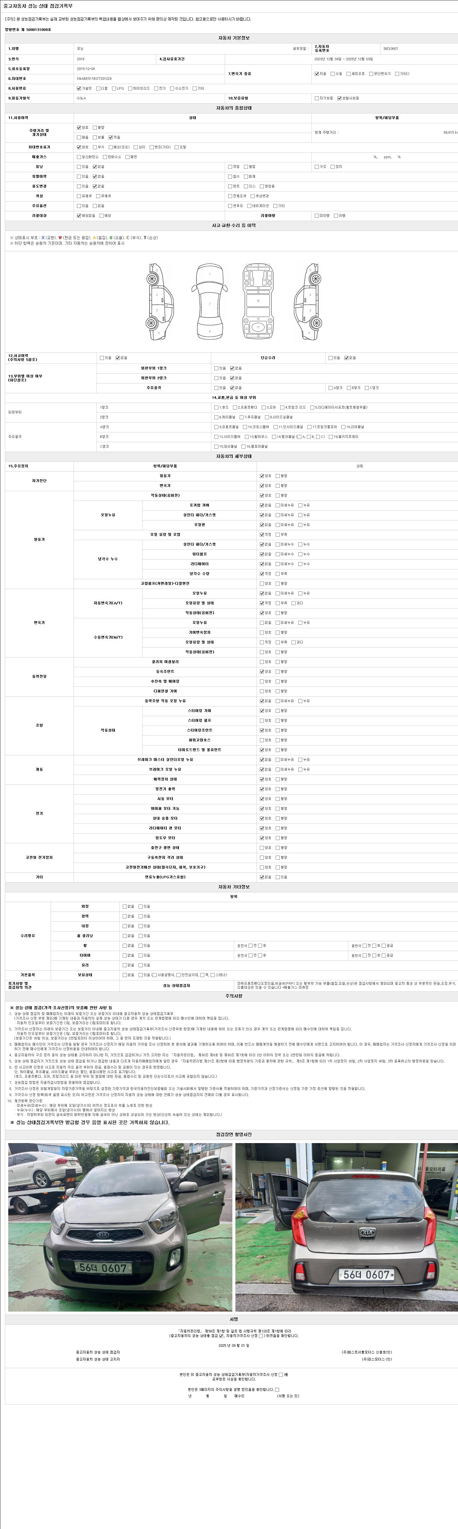 2. 차량 등록증이나 성능점검지 등을 상담자에게 요청및 확인하시고 사전에 미리 점검 하시기를 권유드립니다.