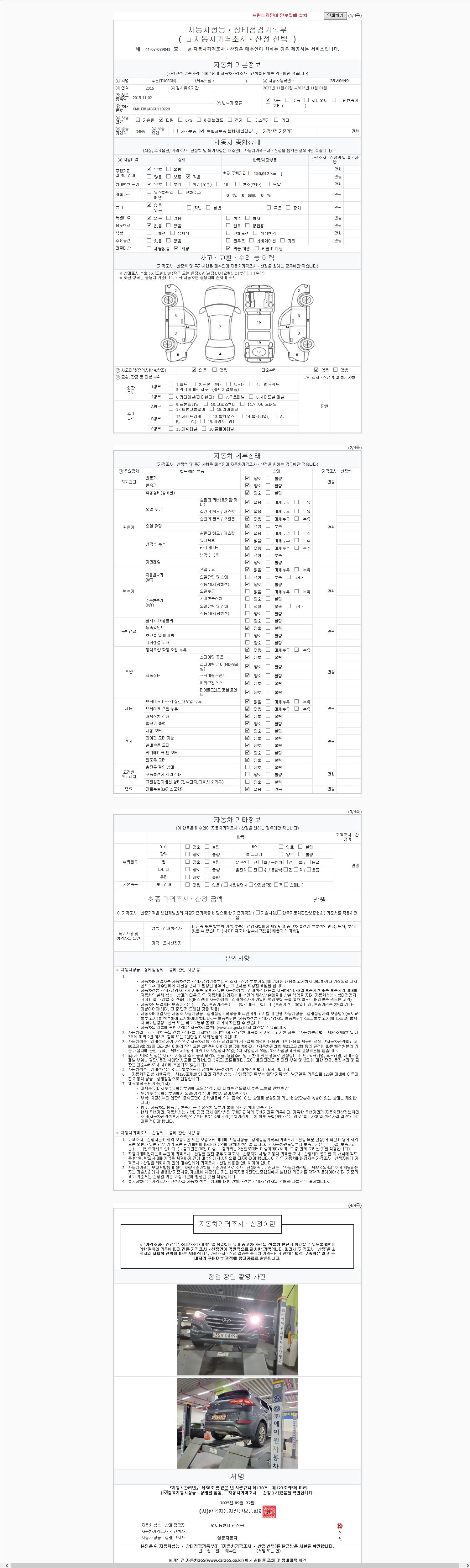 -중고자동차 매매업자를 통해 차량을 구입하실 경우 반드시 "중고자동차 성능, 상태점검 기록부"를 교뷰 받으셔야 하며, 매매업자는 반드시 의무 교부 하여야 압니다.