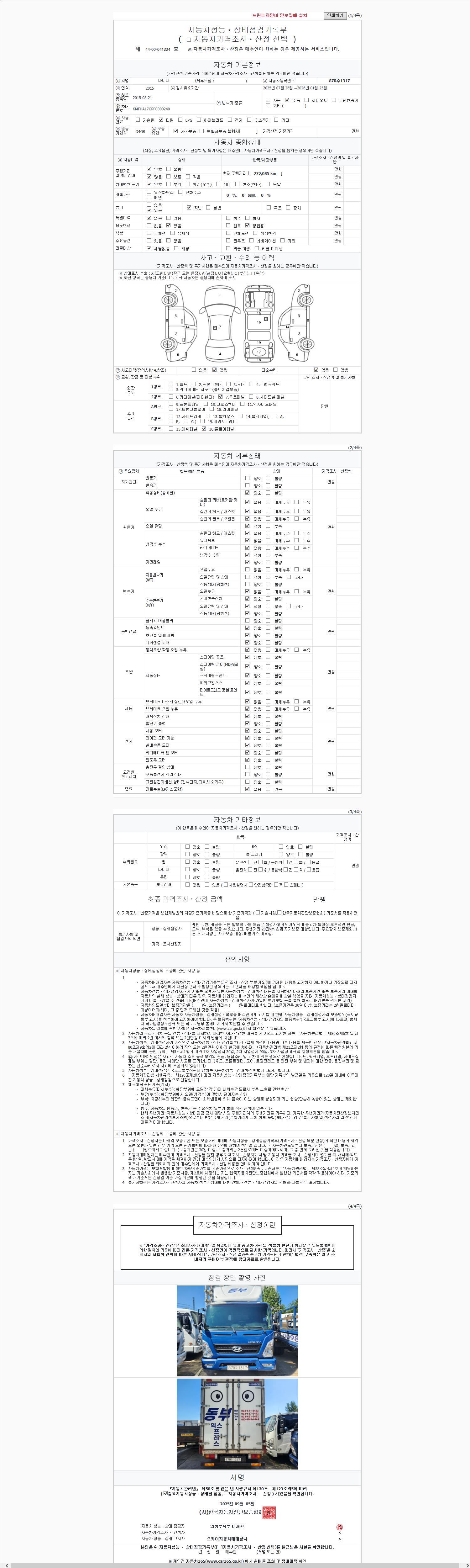 | 주행거리 | 272,085 km | 차량번호 | 870주1317 |