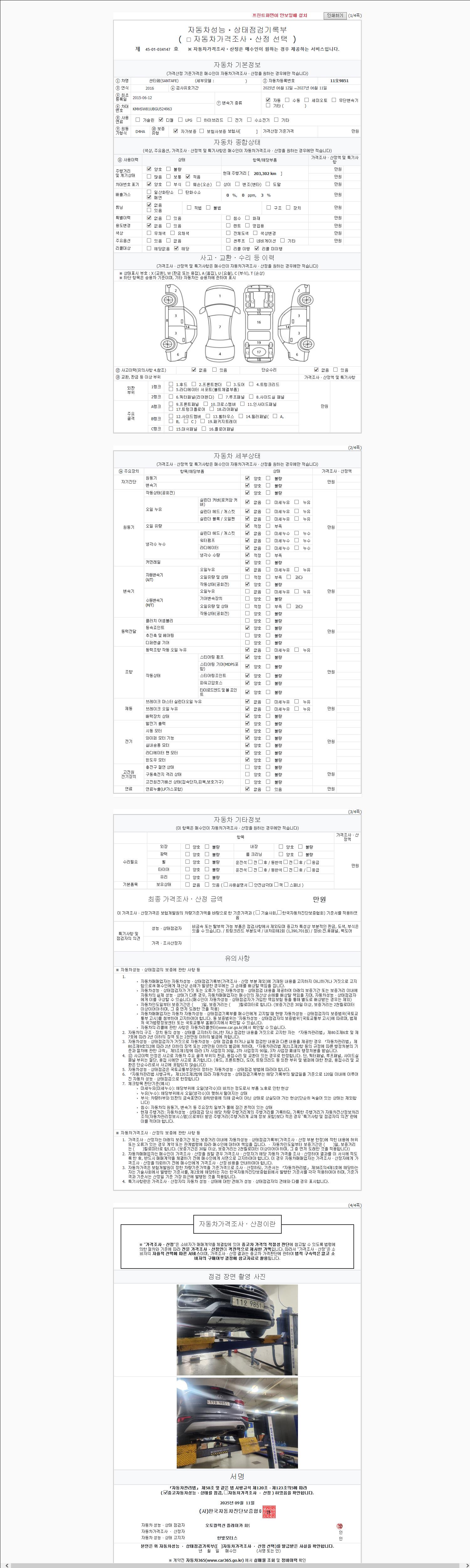 2. 차량 등록증이나 성능점검지 등을 상담자에게 요청및 확인하시고 사전에 미리 점검 하시기를 권유드립니다.