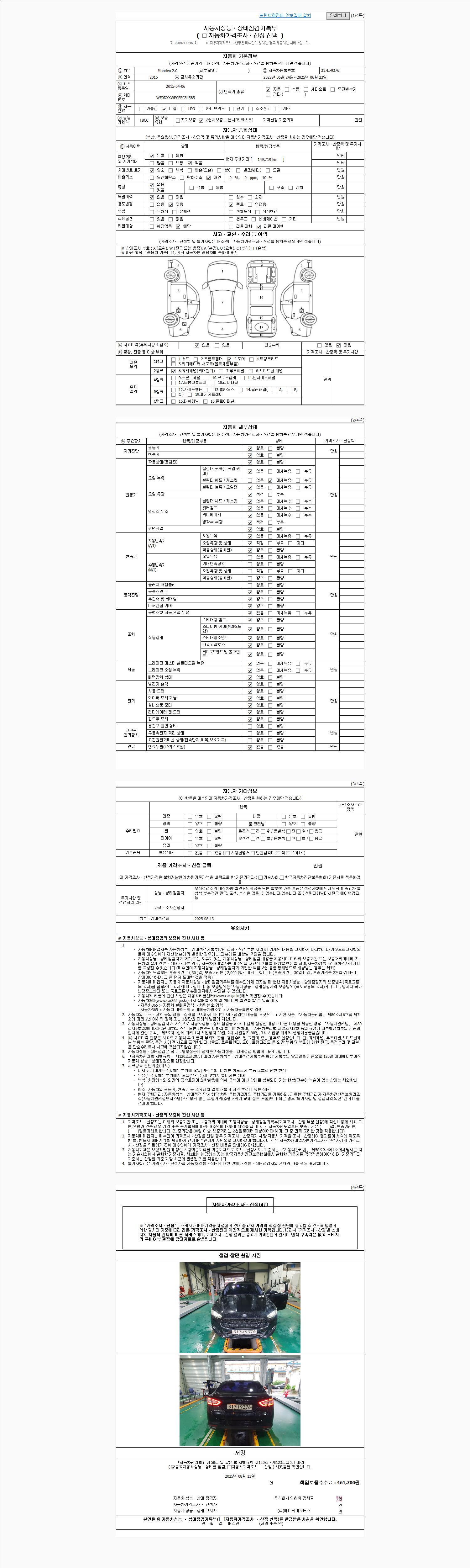 2. 차량 등록증이나 성능점검지 등을 상담자에게 요청및 확인하시고 사전에 미리 점검 하시기를 권유드립니다.