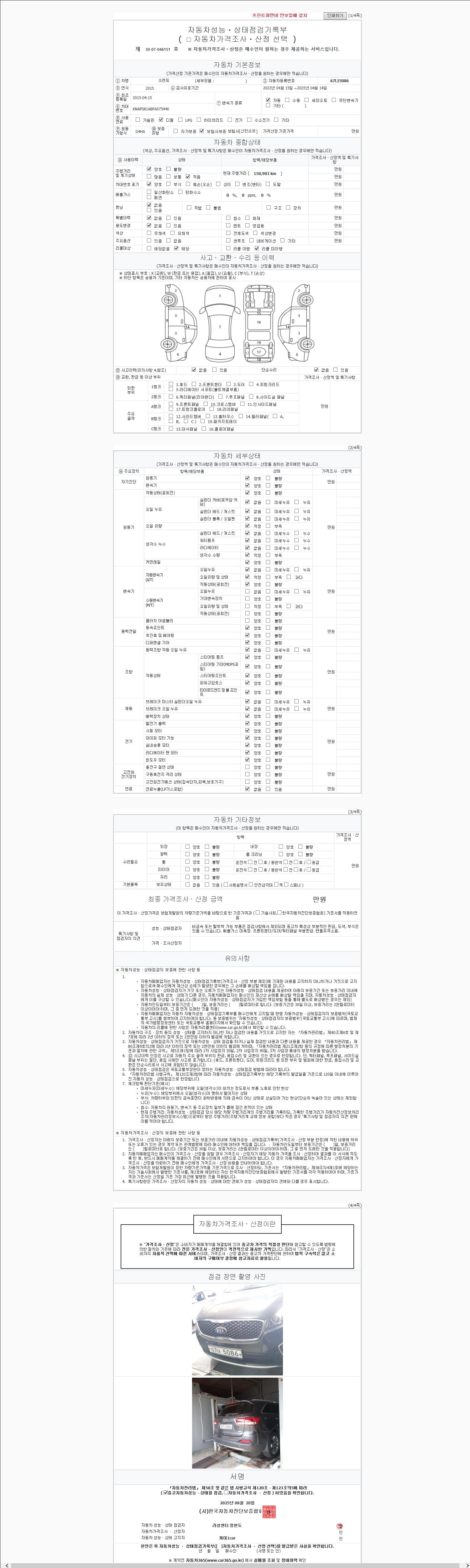 2. 차량 등록증이나 성능점검지 등을 상담자에게 요청및 확인하시고 사전에 미리 점검 하시기를 권유드립니다.