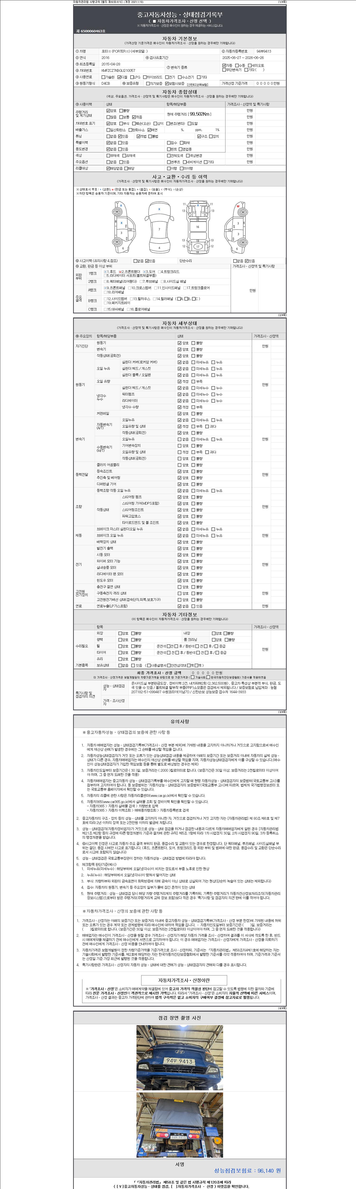 | 주행거리 | 99,502 km | 차량번호 | 94부9413 |