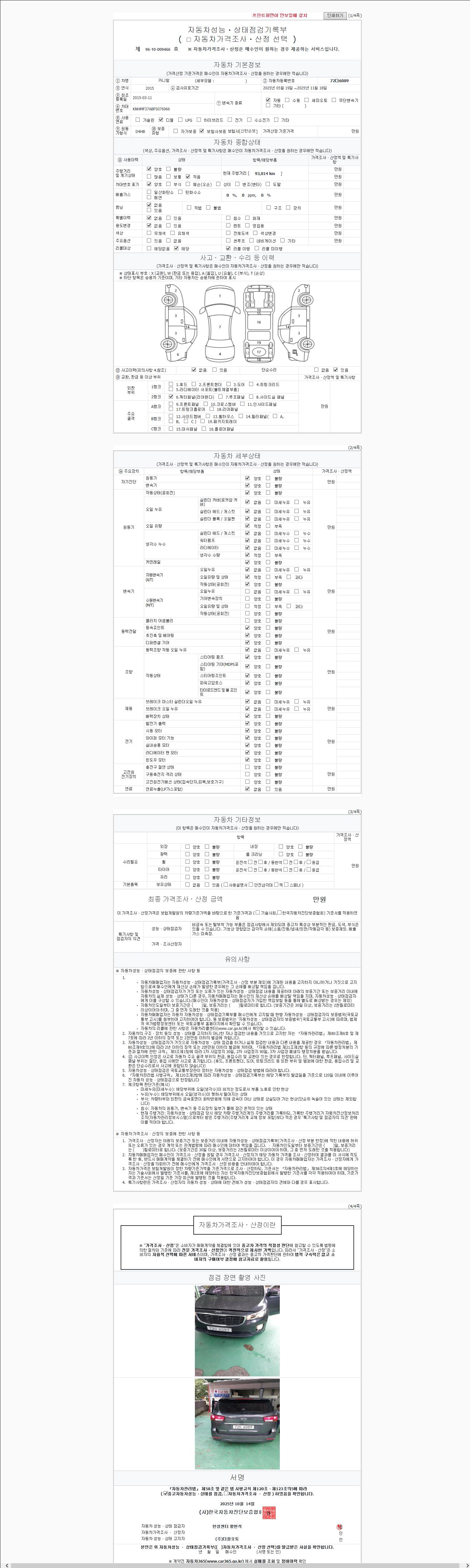 2. 차량 등록증이나 성능점검지 등을 상담자에게 요청및 확인하시고 사전에 미리 점검 하시기를 권유드립니다.