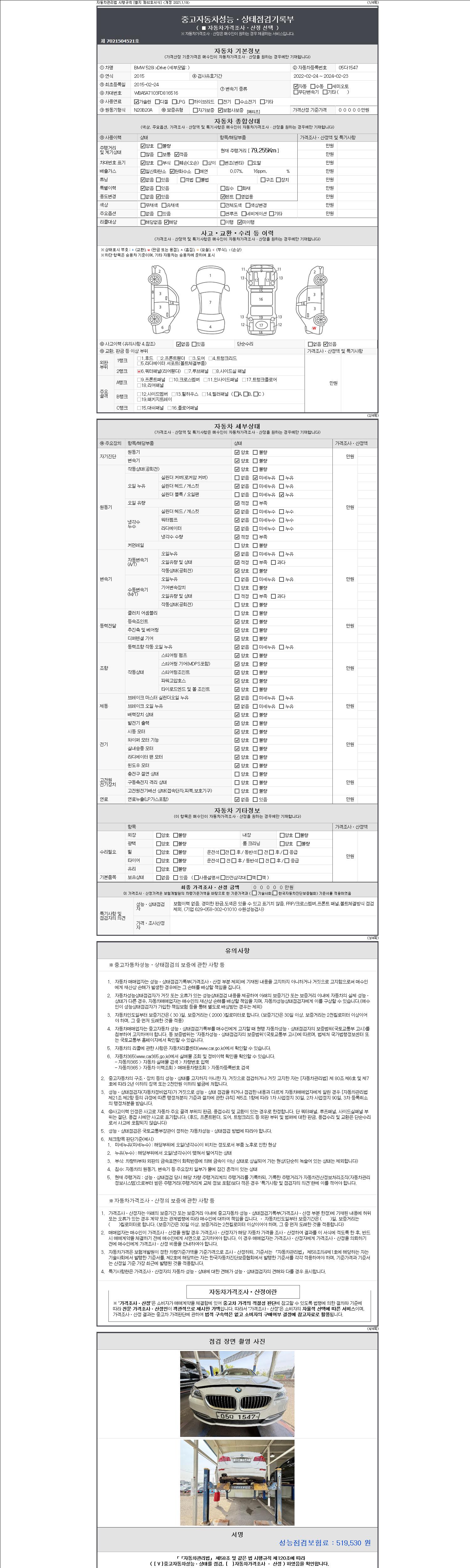 -중고자동차 매매업자를 통해 차량을 구입하실 경우 반드시 "중고자동차 성능, 상태점검 기록부"를 교뷰 받으셔야 하며, 매매업자는 반드시 의무 교부 하여야 압니다.