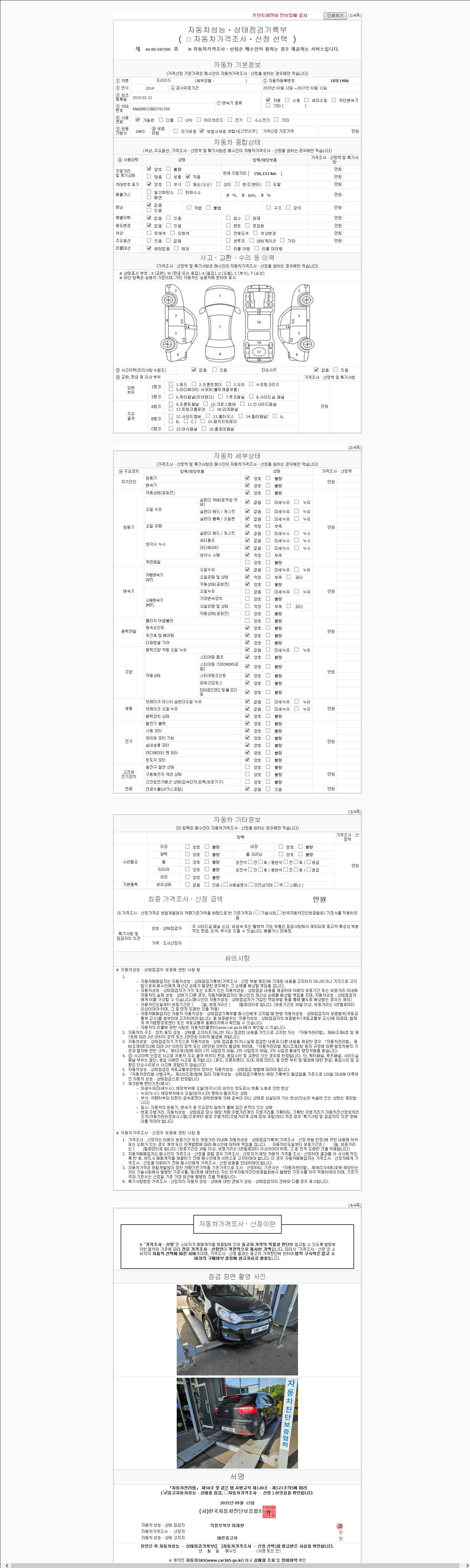 2. 차량 등록증이나 성능점검지 등을 상담자에게 요청및 확인하시고 사전에 미리 점검 하시기를 권유드립니다.