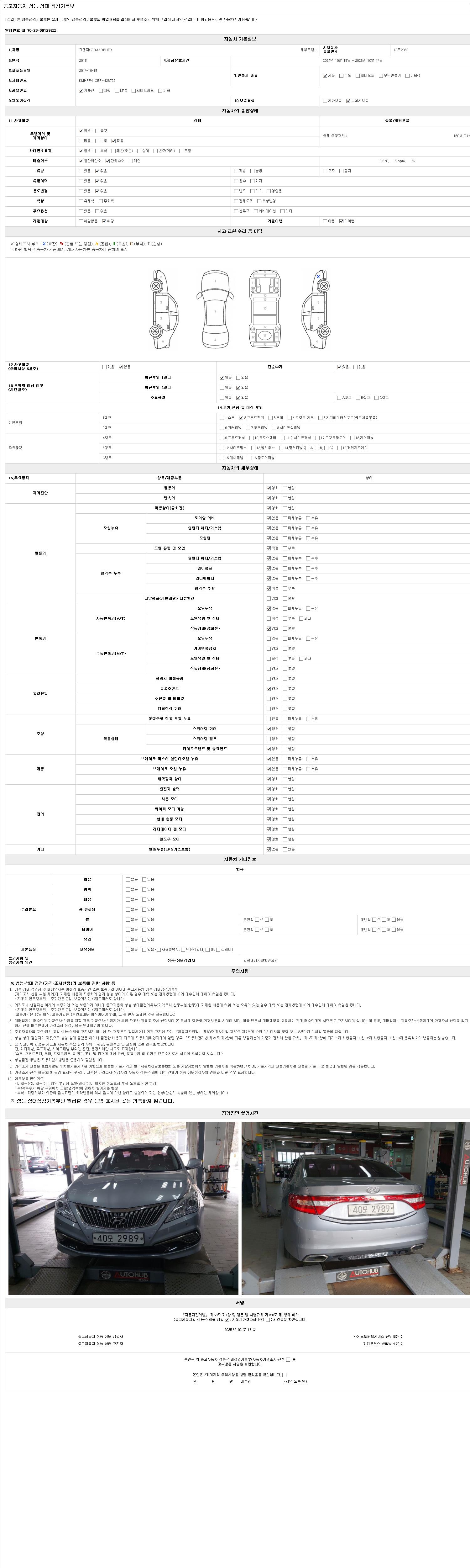 2. 차량 등록증이나 성능점검지 등을 상담자에게 요청및 확인하시고 사전에 미리 점검 하시기를 권유드립니다.