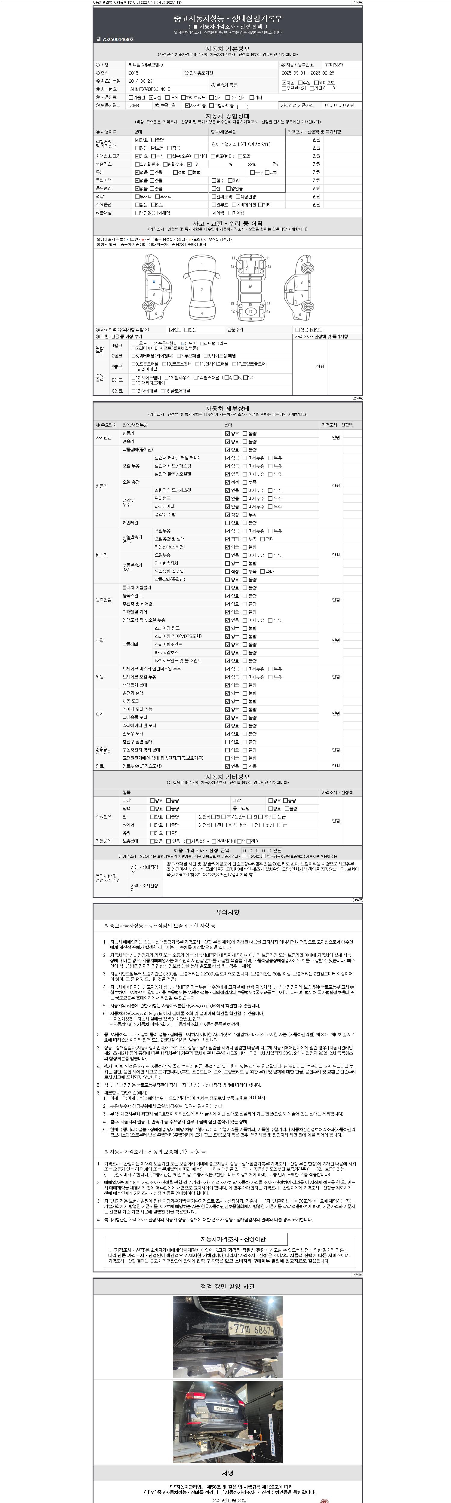 2. 차량 등록증이나 성능점검지 등을 상담자에게 요청및 확인하시고 사전에 미리 점검 하시기를 권유드립니다.
