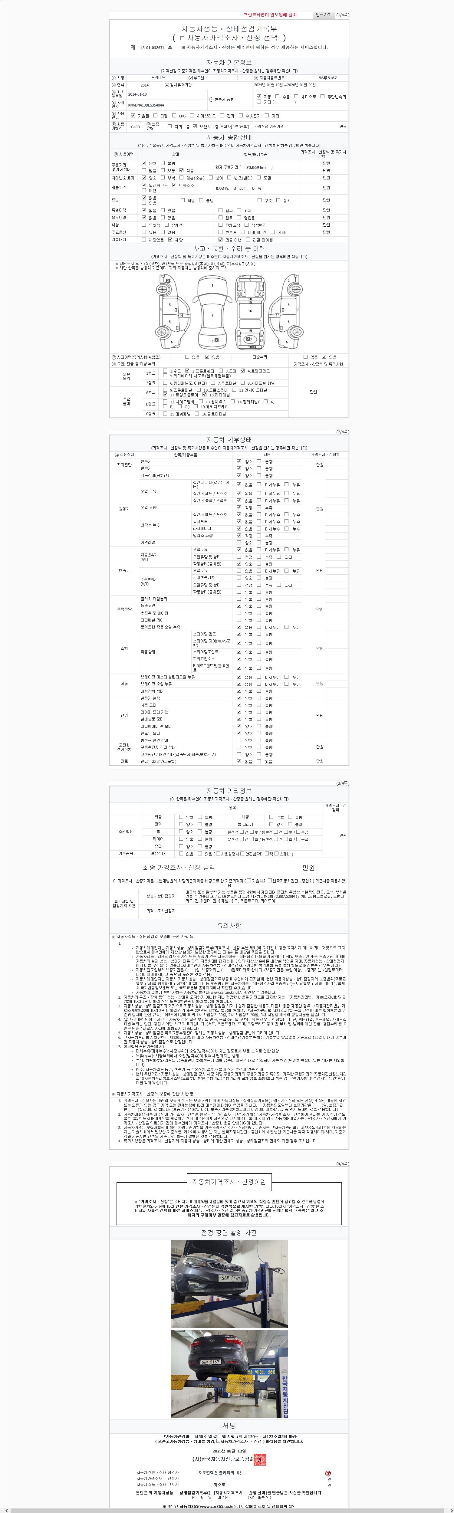 2. 차량 등록증이나 성능점검지 등을 상담자에게 요청및 확인하시고 사전에 미리 점검 하시기를 권유드립니다.