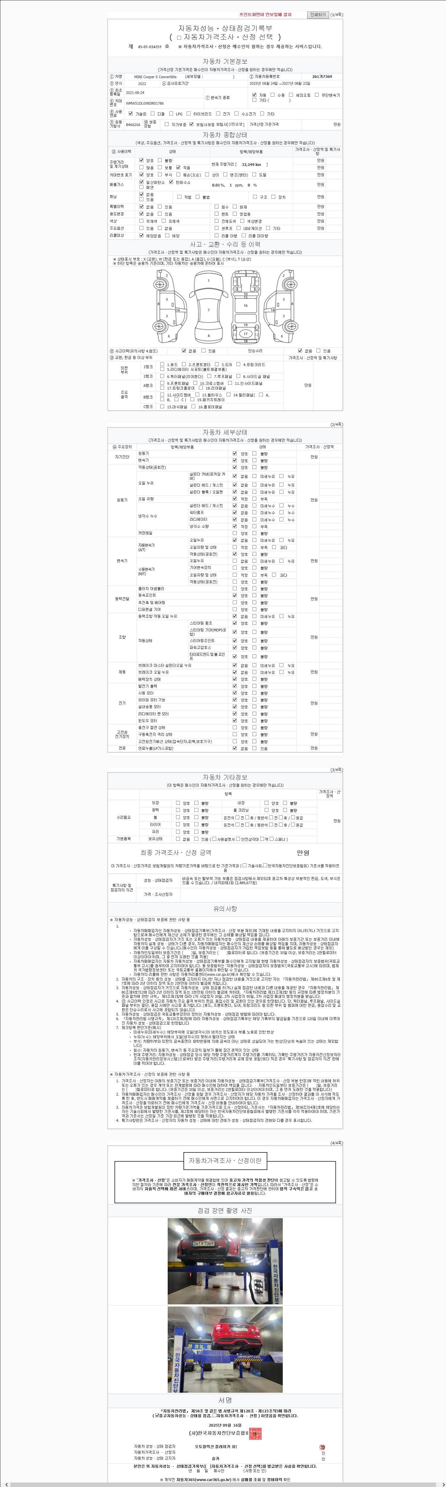 사고유무 성능기록부 참조 제시번호 제 2147483647 호