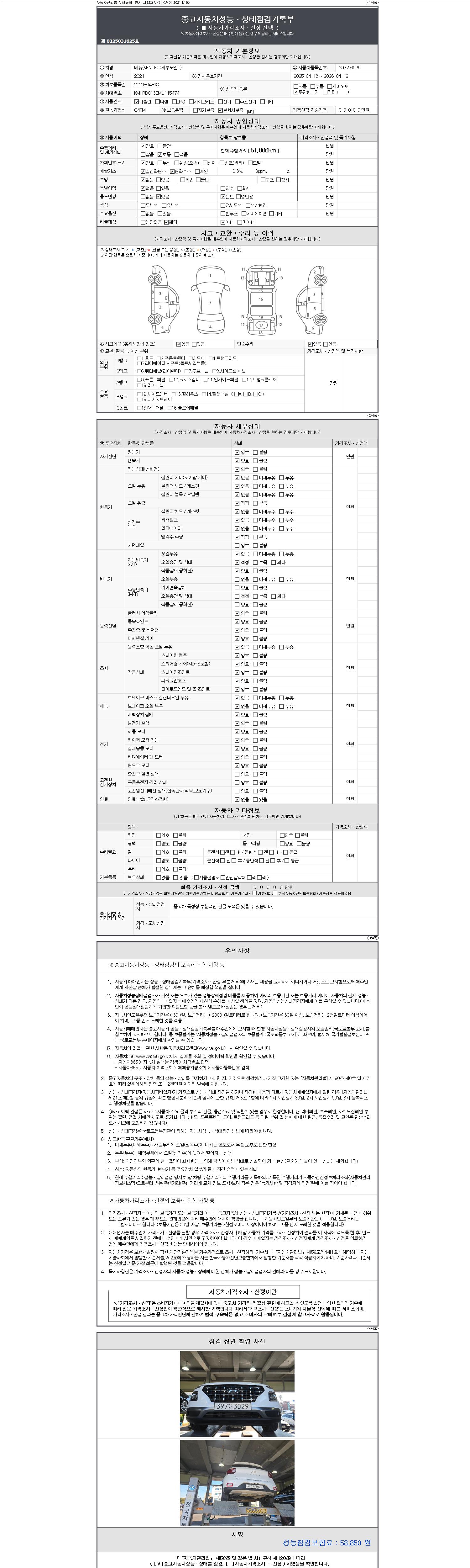 2. 차량 등록증이나 성능점검지 등을 상담자에게 요청및 확인하시고 사전에 미리 점검 하시기를 권유드립니다.