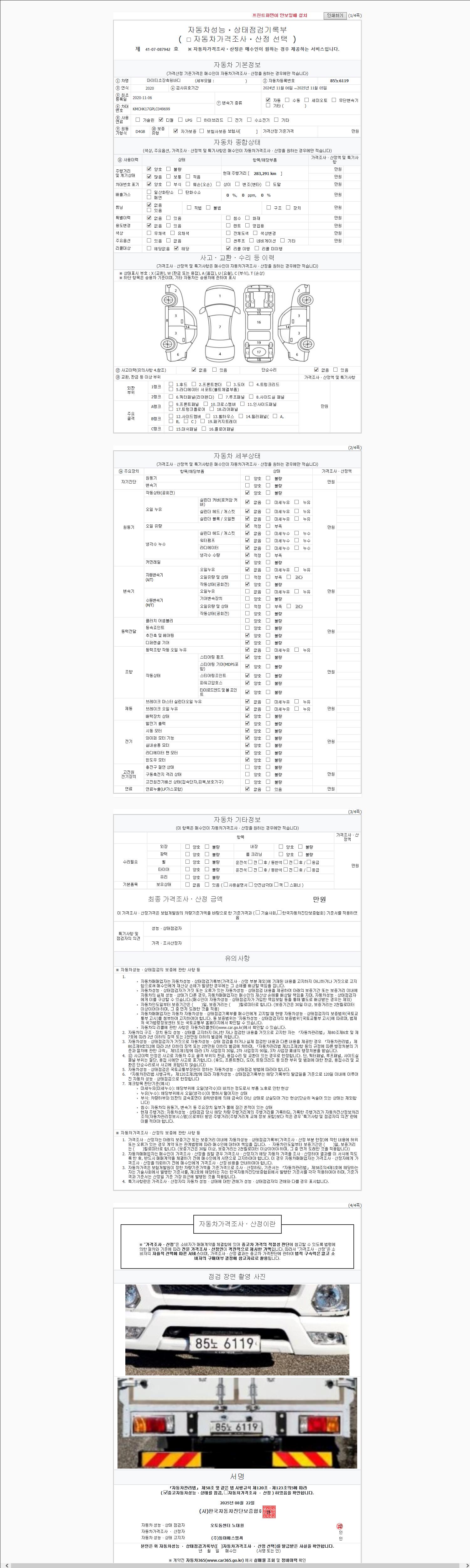 2. 차량 등록증이나 성능점검지 등을 상담자에게 요청및 확인하시고 사전에 미리 점검 하시기를 권유드립니다.