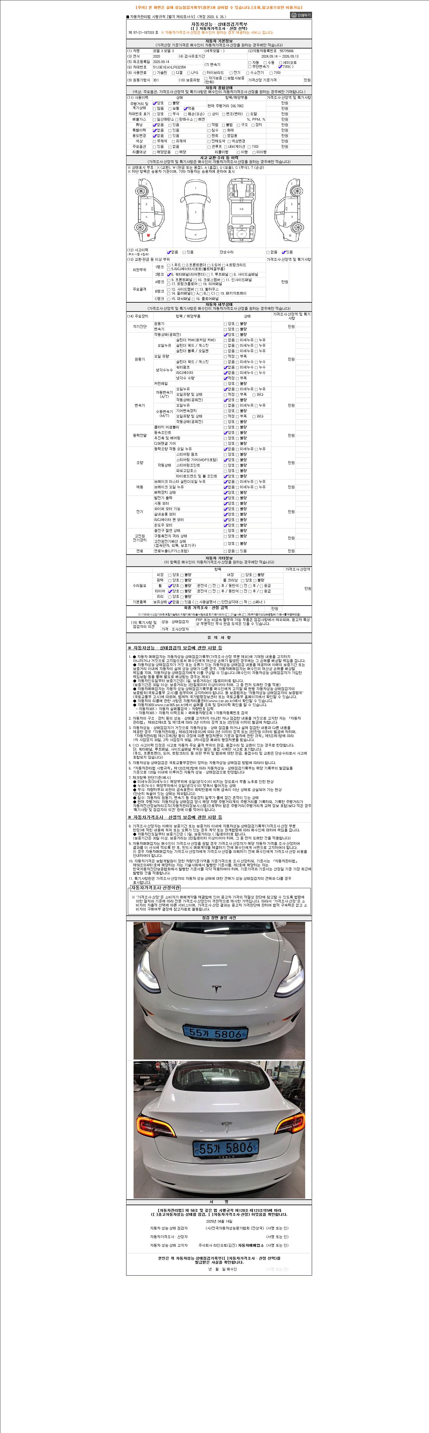 사고유무 성능기록부 참조 제시번호 제 2025049501 호
