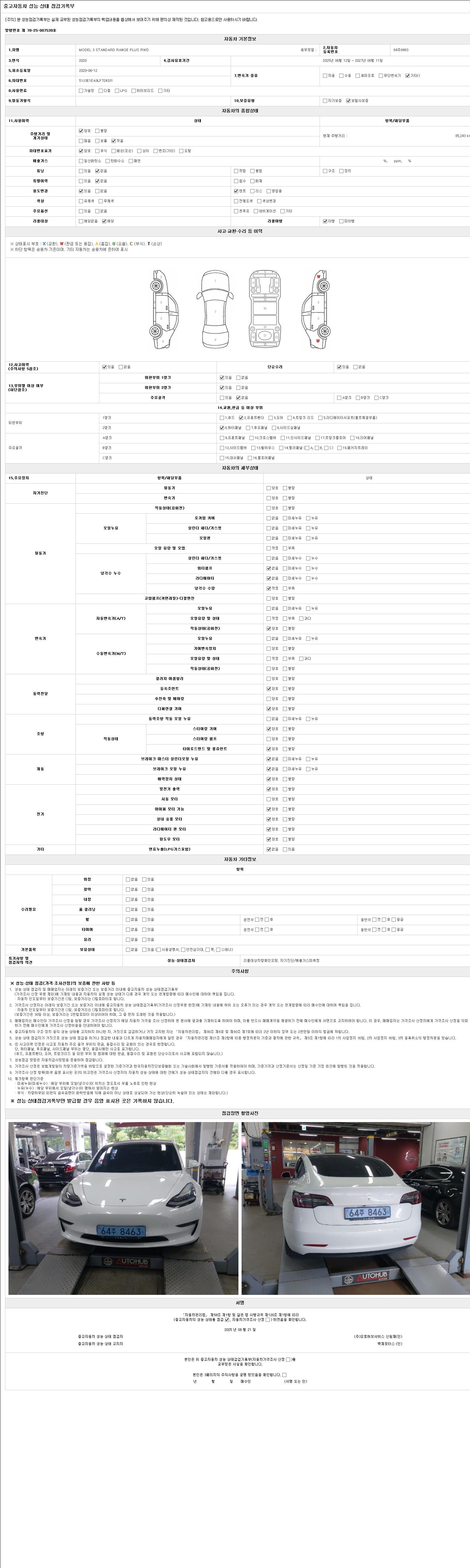 자동차관리법 시행규칙 제120조의 규정에 따라 별지 제 82호서식 《중고자동차 성능, 상태점검 기록부》를 발행한 성능, 상태점검자 및 매매자는 아래의 보증기간 또는 보증거리 이내의 중고자동차, 성능점검 기록부에 기재된 내용과 자동차의 실제 성능, 상태가 다른 경우 계약 또는 관계법령에 따라 매수인에 대하여 책임을 집니다.
