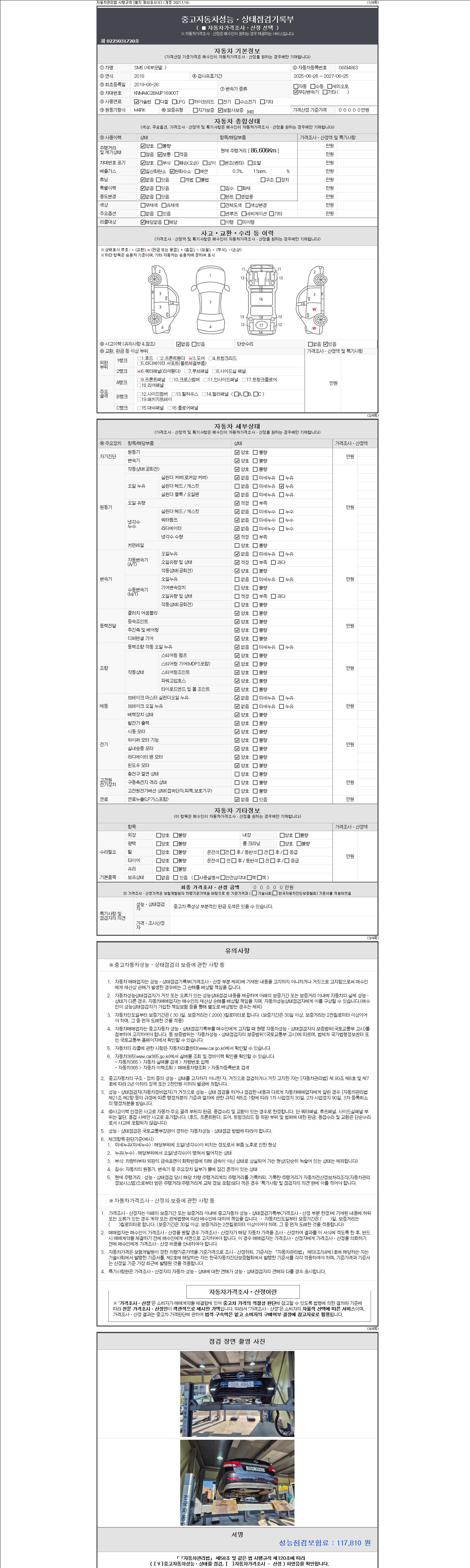 | 주행거리 | 86,606 km | 차량번호 | 08라4863 |