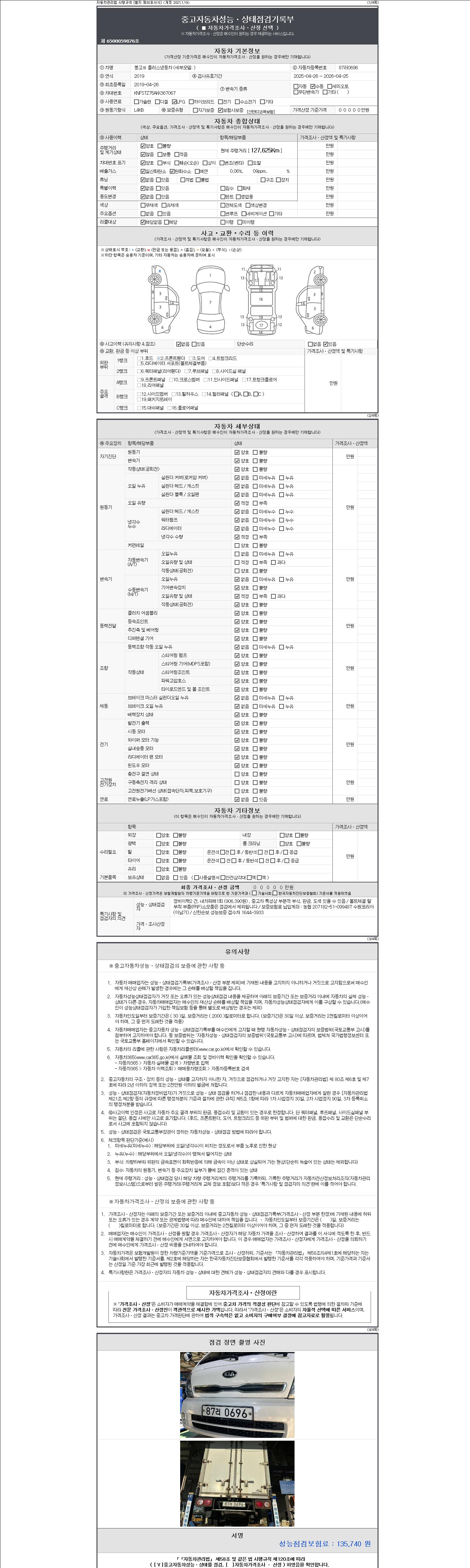 | 주행거리 | 127,625 km | 차량번호 | 87러0696 |