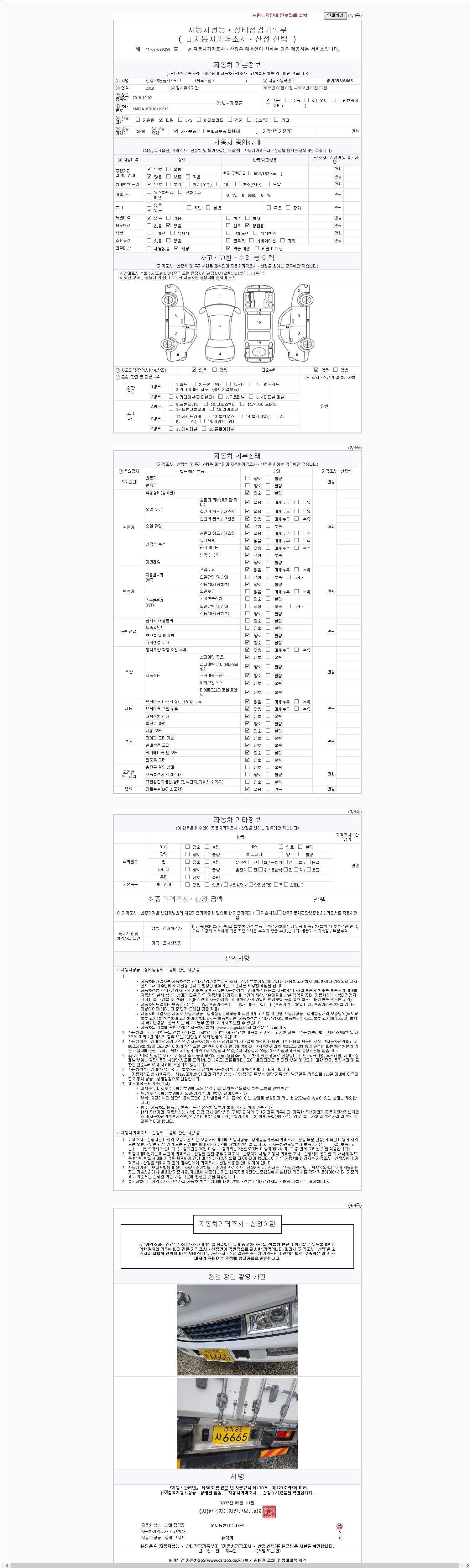 | 주행거리 | 604,173 km | 차량번호 | 경기85사6665 |