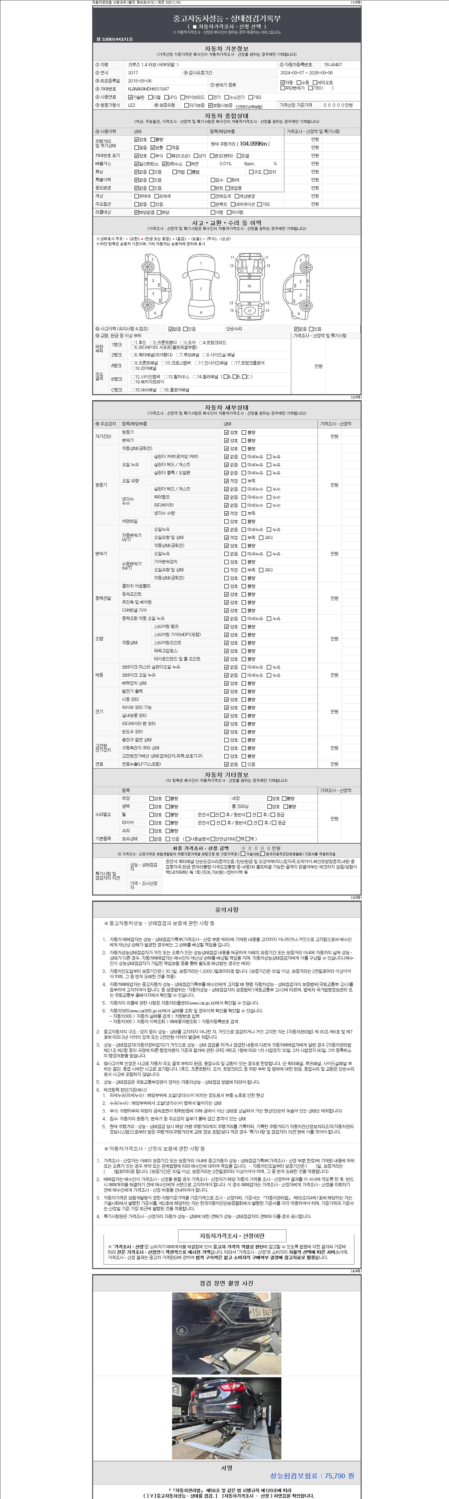 2. 차량 등록증이나 성능점검지 등을 상담자에게 요청및 확인하시고 사전에 미리 점검 하시기를 권유드립니다.