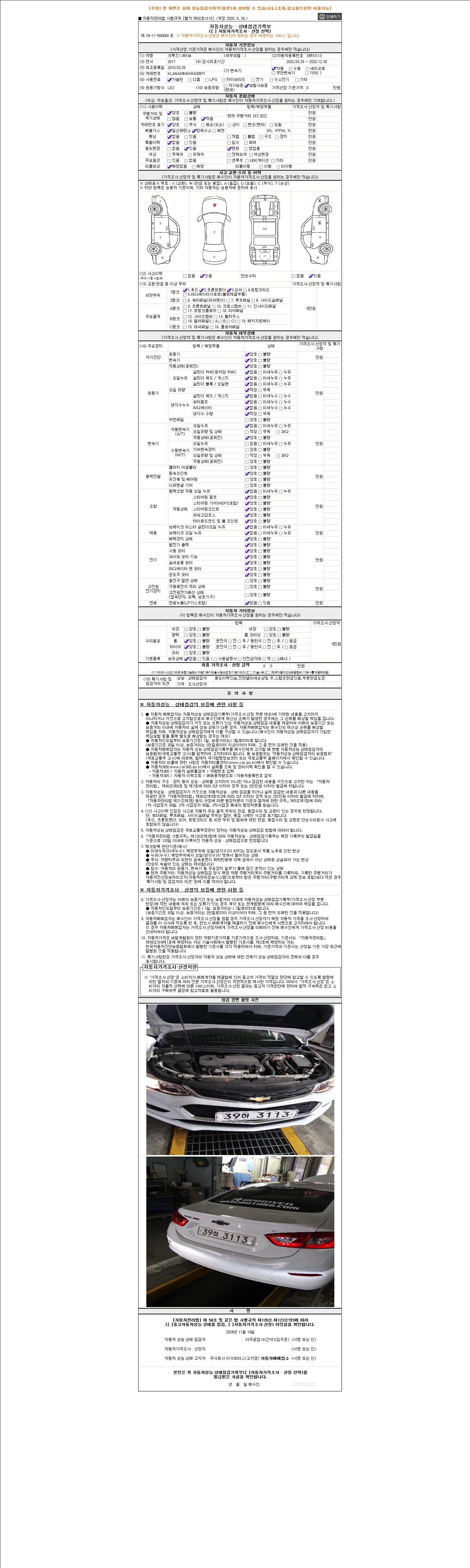 2. 차량 등록증이나 성능점검지 등을 상담자에게 요청및 확인하시고 사전에 미리 점검 하시기를 권유드립니다.