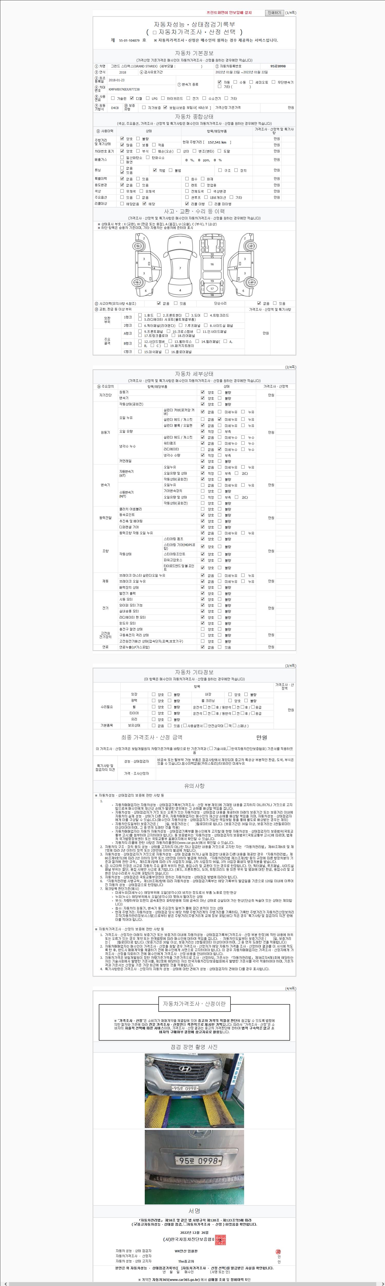 | 주행거리 | 157,541 km | 차량번호 | 95로0998 |