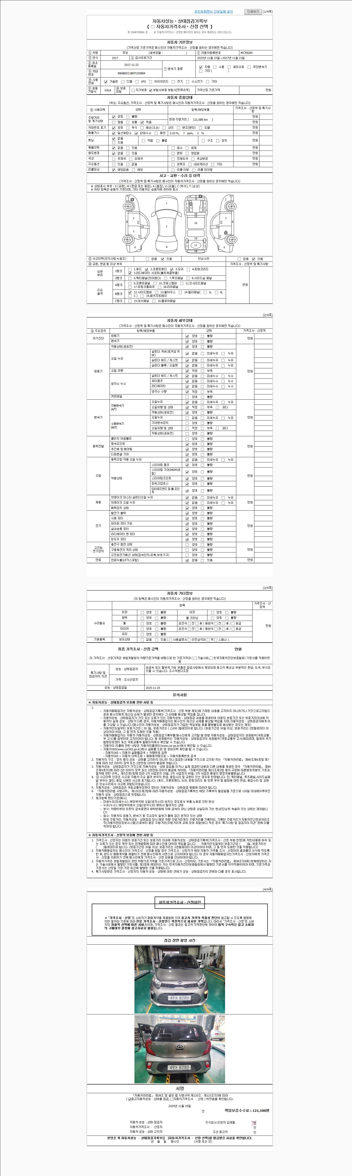 사고유무 성능기록부 참조 제시번호 제 2025065146 호